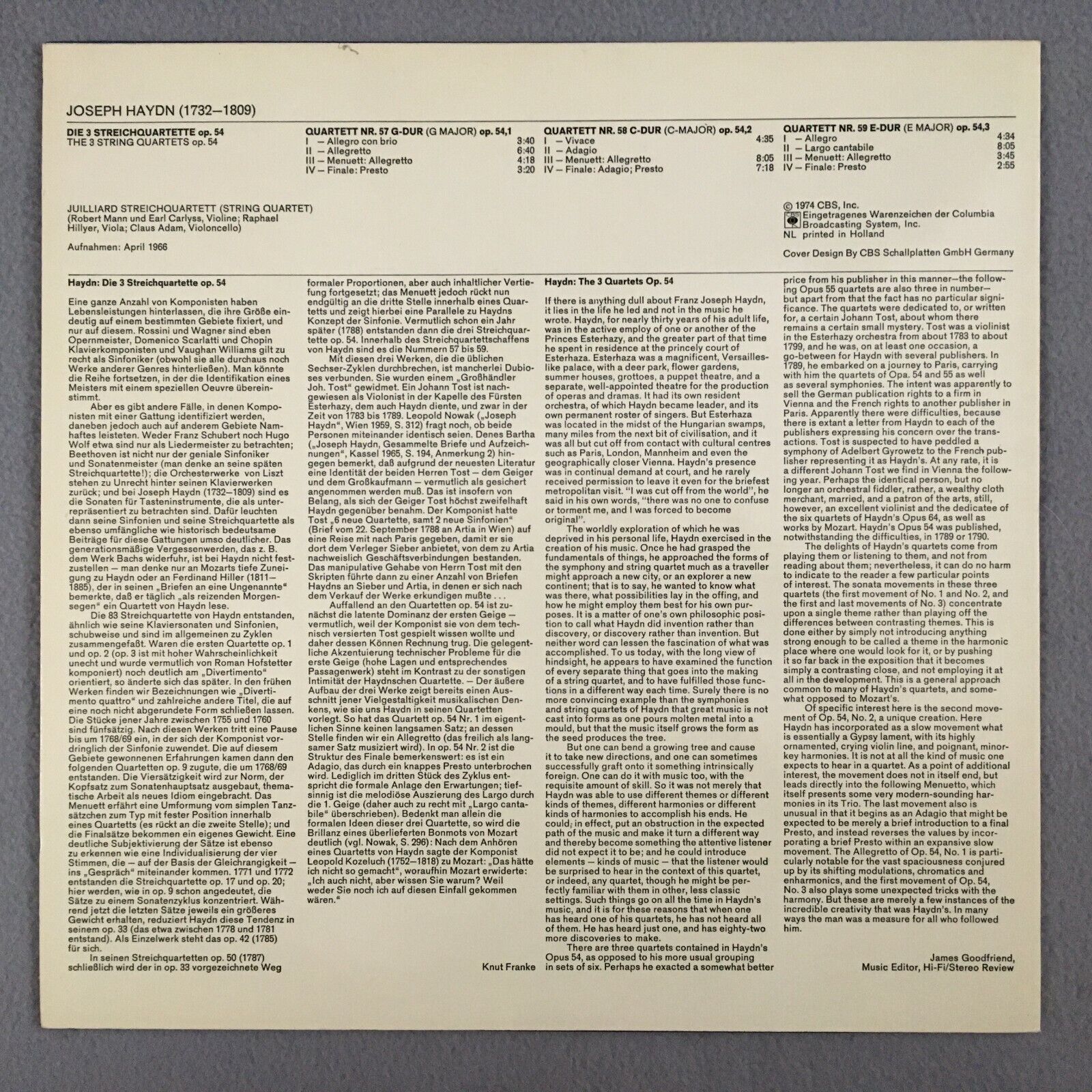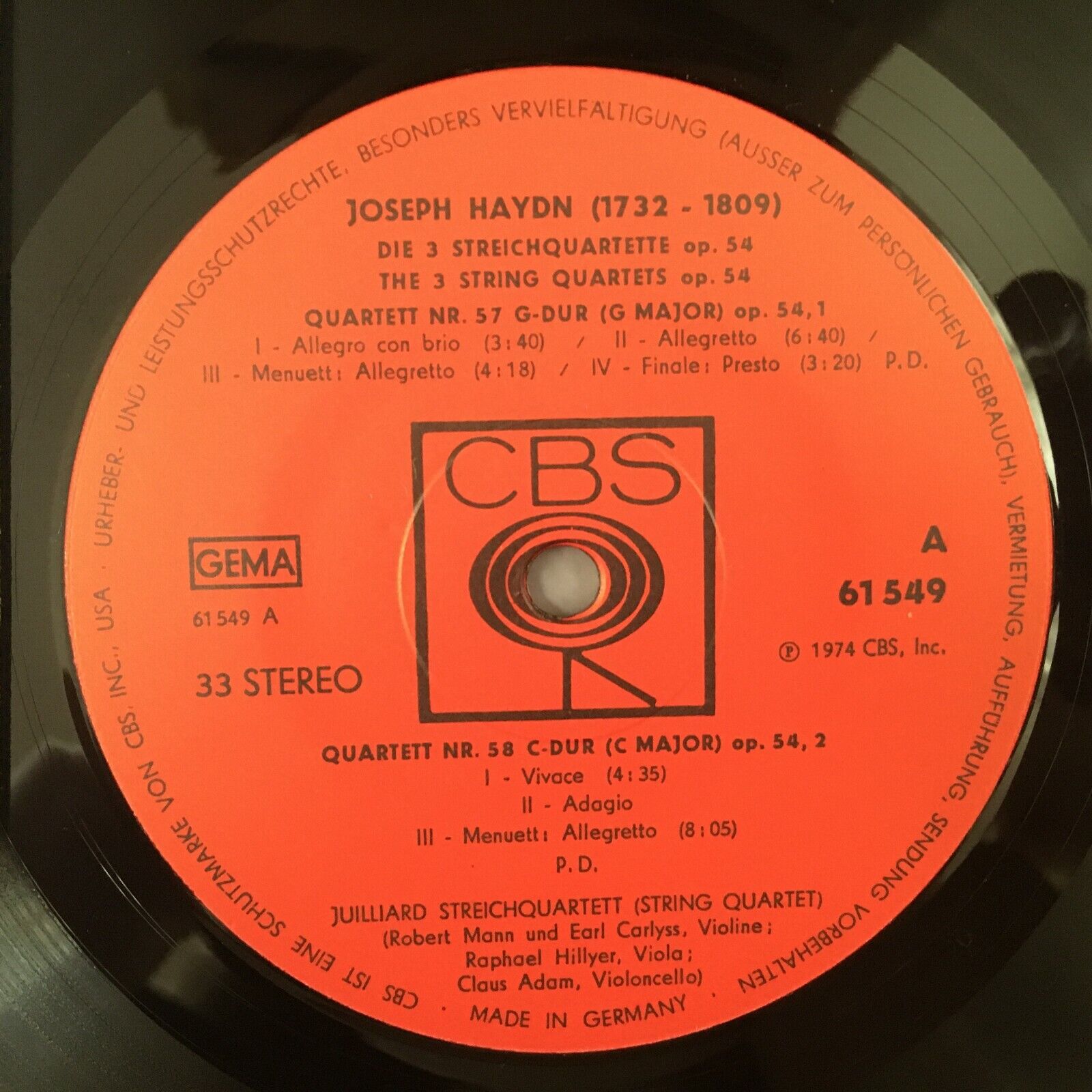 Y834 Haydn The 3 String Quartets Juilliard String Quartet CBS 61 549 Stereo