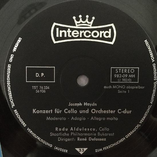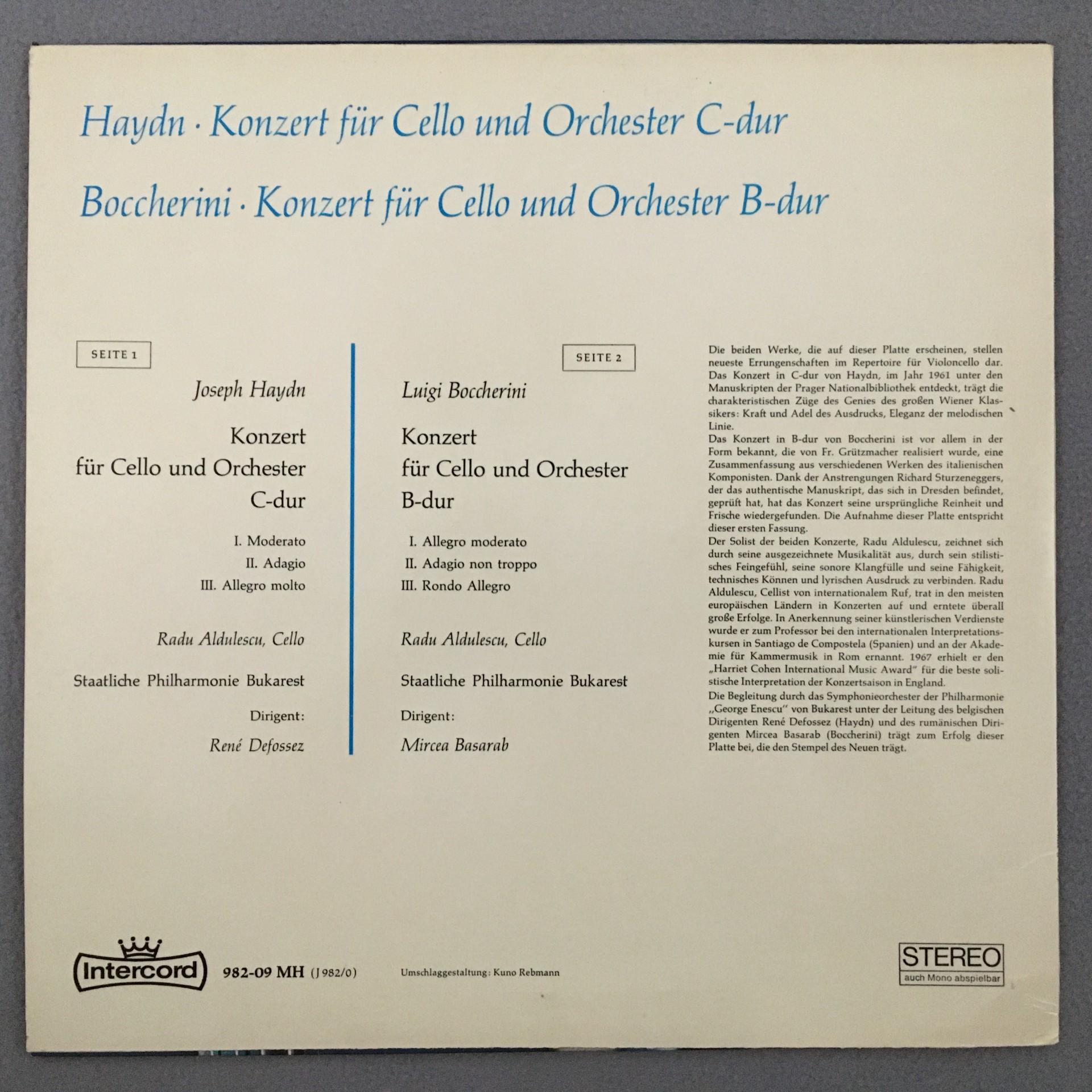 N167 Haydn Boccherini Cello Concertos Aldulescu Basarab Intercord 982-09 MH St