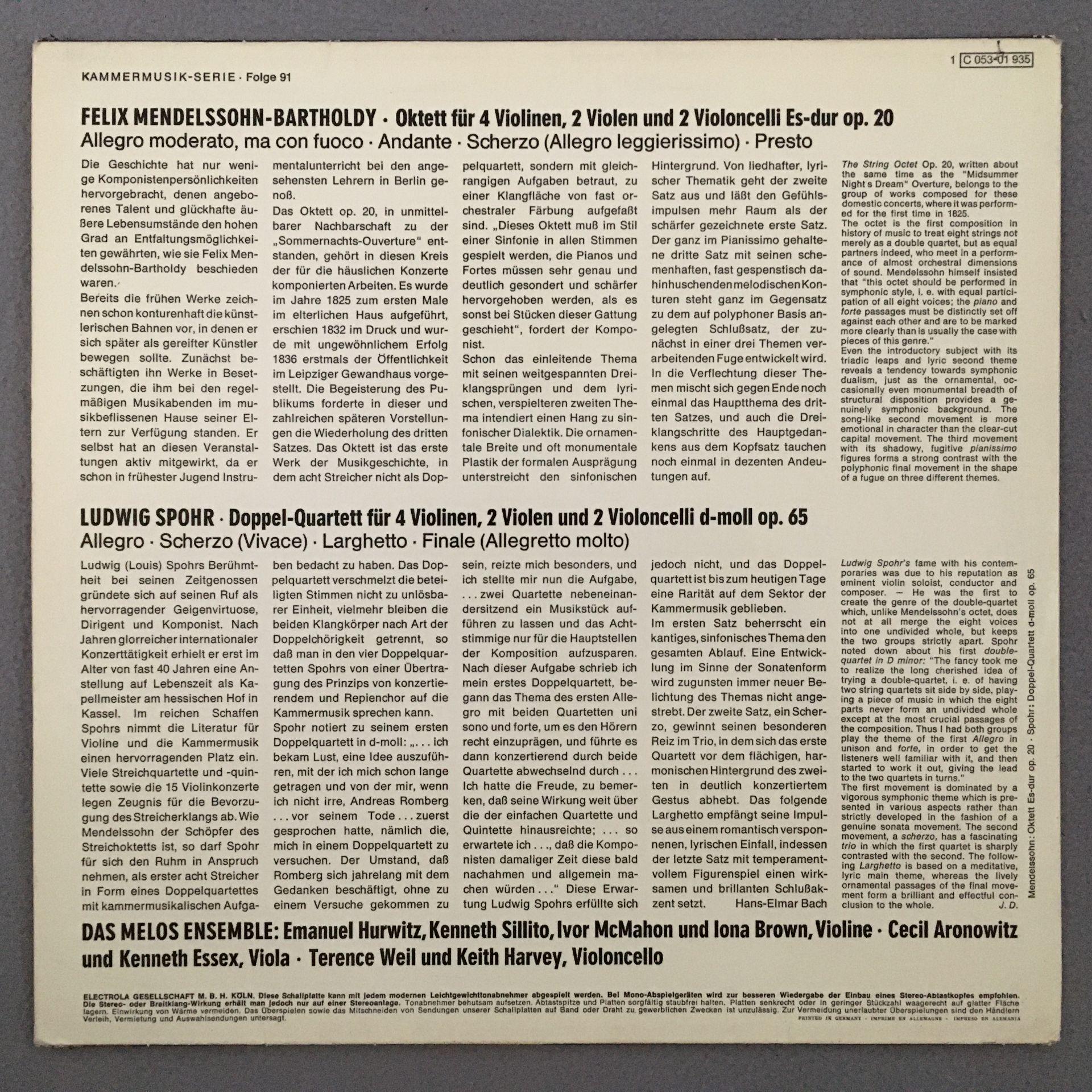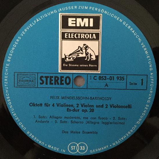 N169 Mendelssohn Octet Spohr Quartet Melos Ensemble EMI 1 C 053-01 935 Stereo