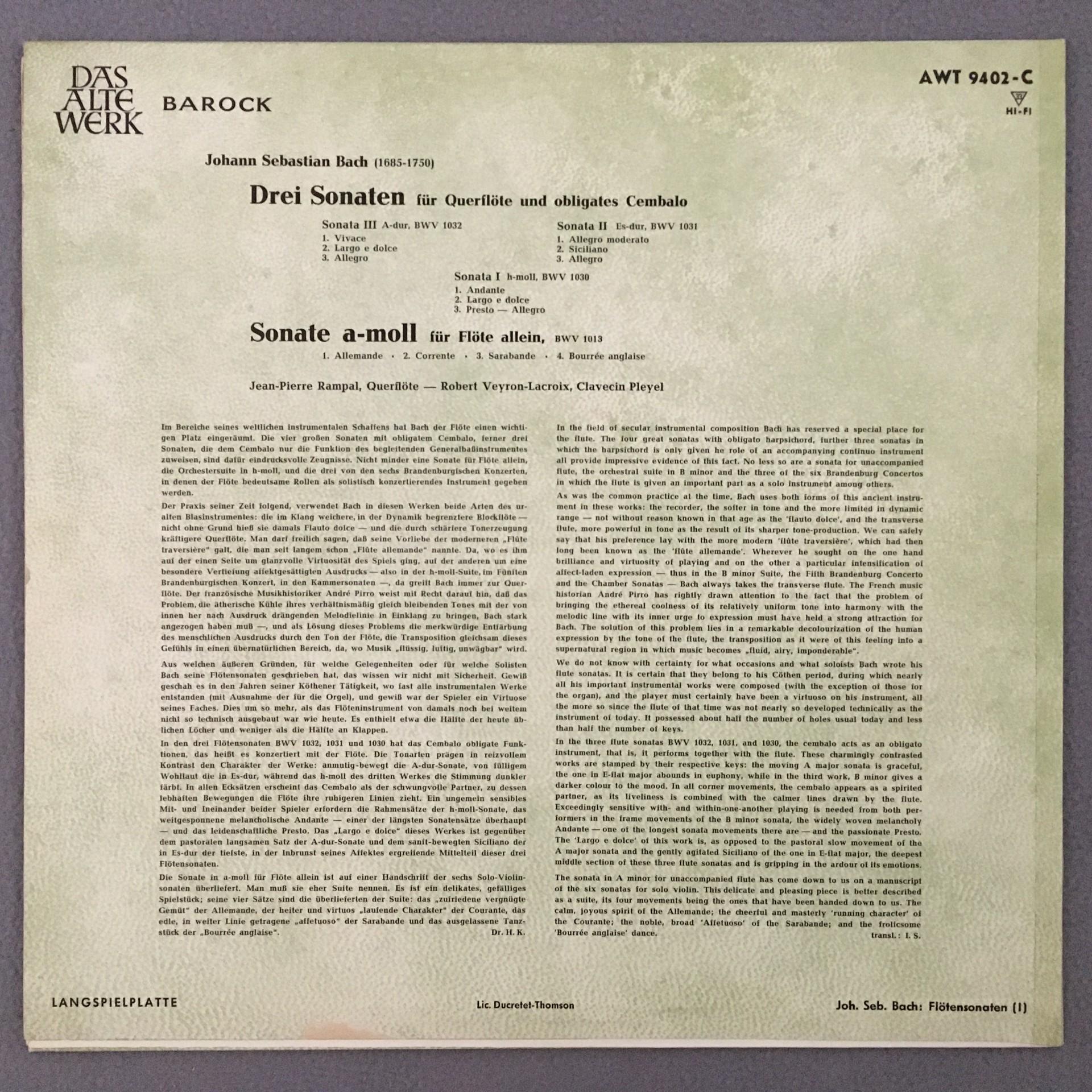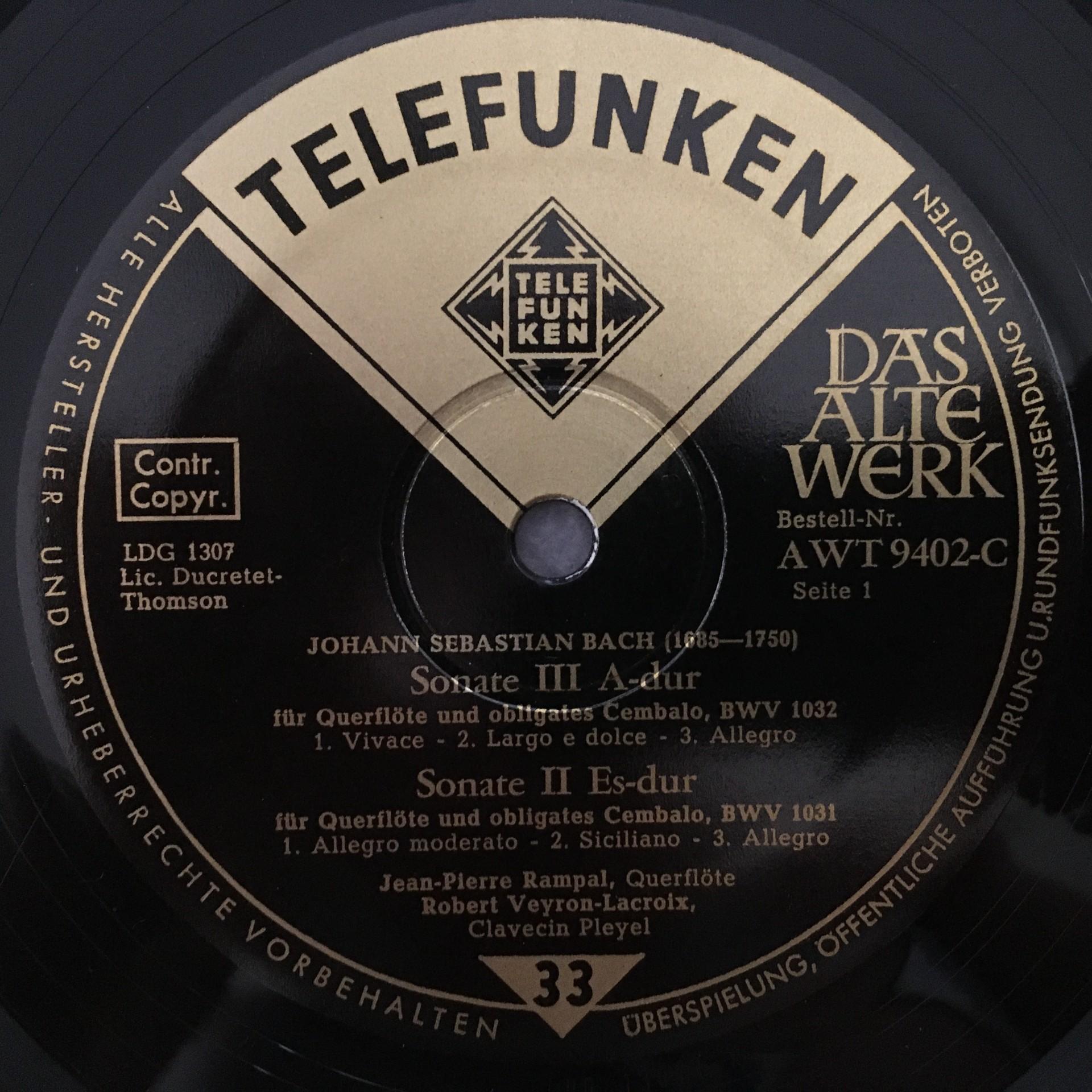N174 Bach Sonatas Rampal Flute Veyron-Lacroix Pleyel Telefunken AWT 9402-C
