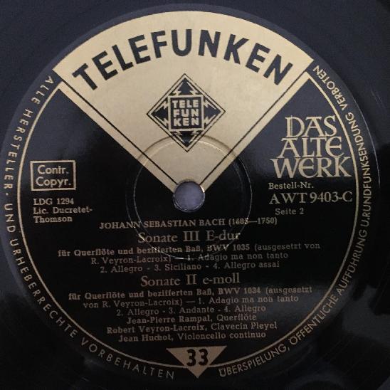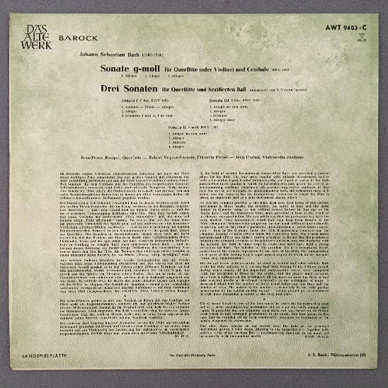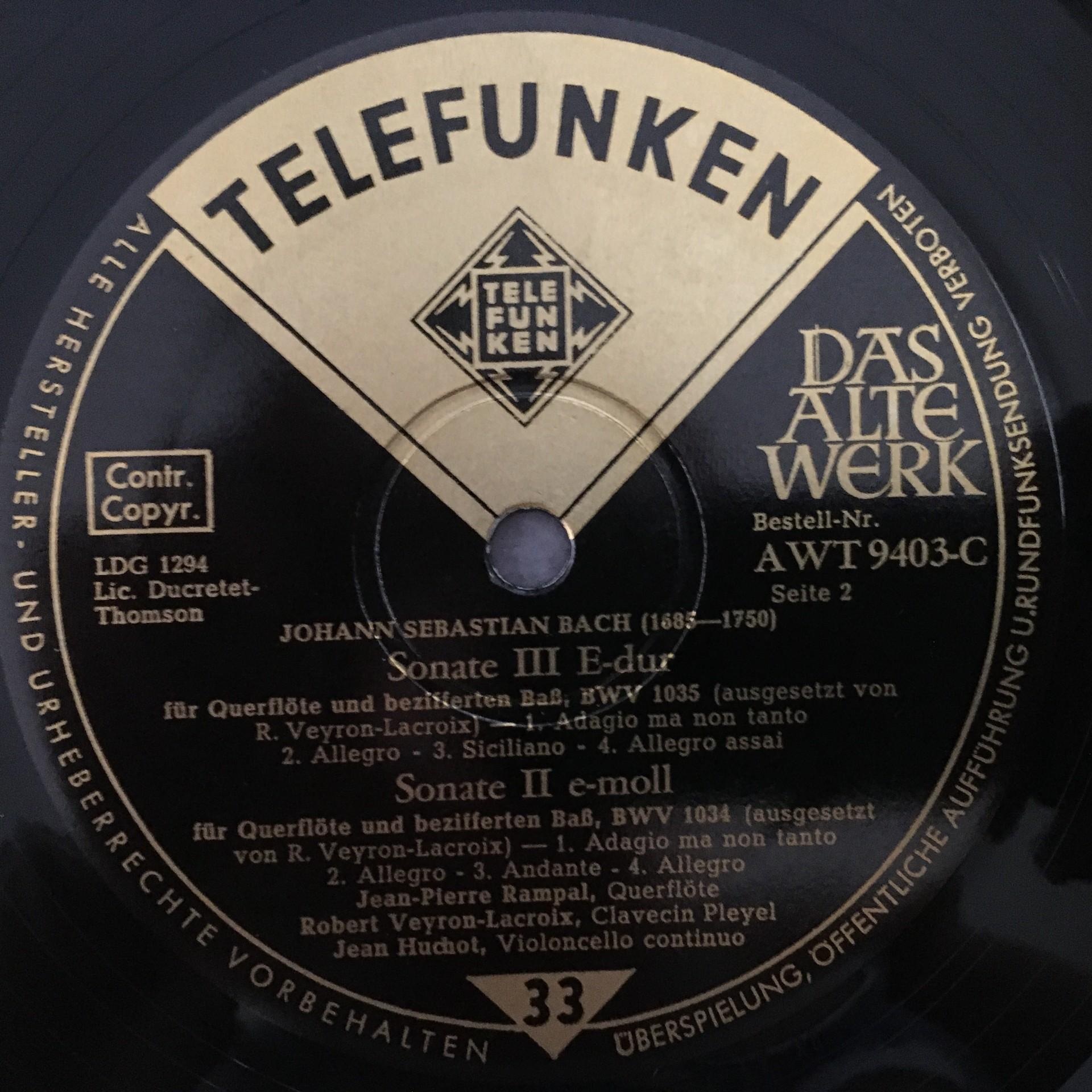 N175 Bach Sonatas Rampal Flute Veyron-Lacroix Huchot Telefunken AWT 9403-C