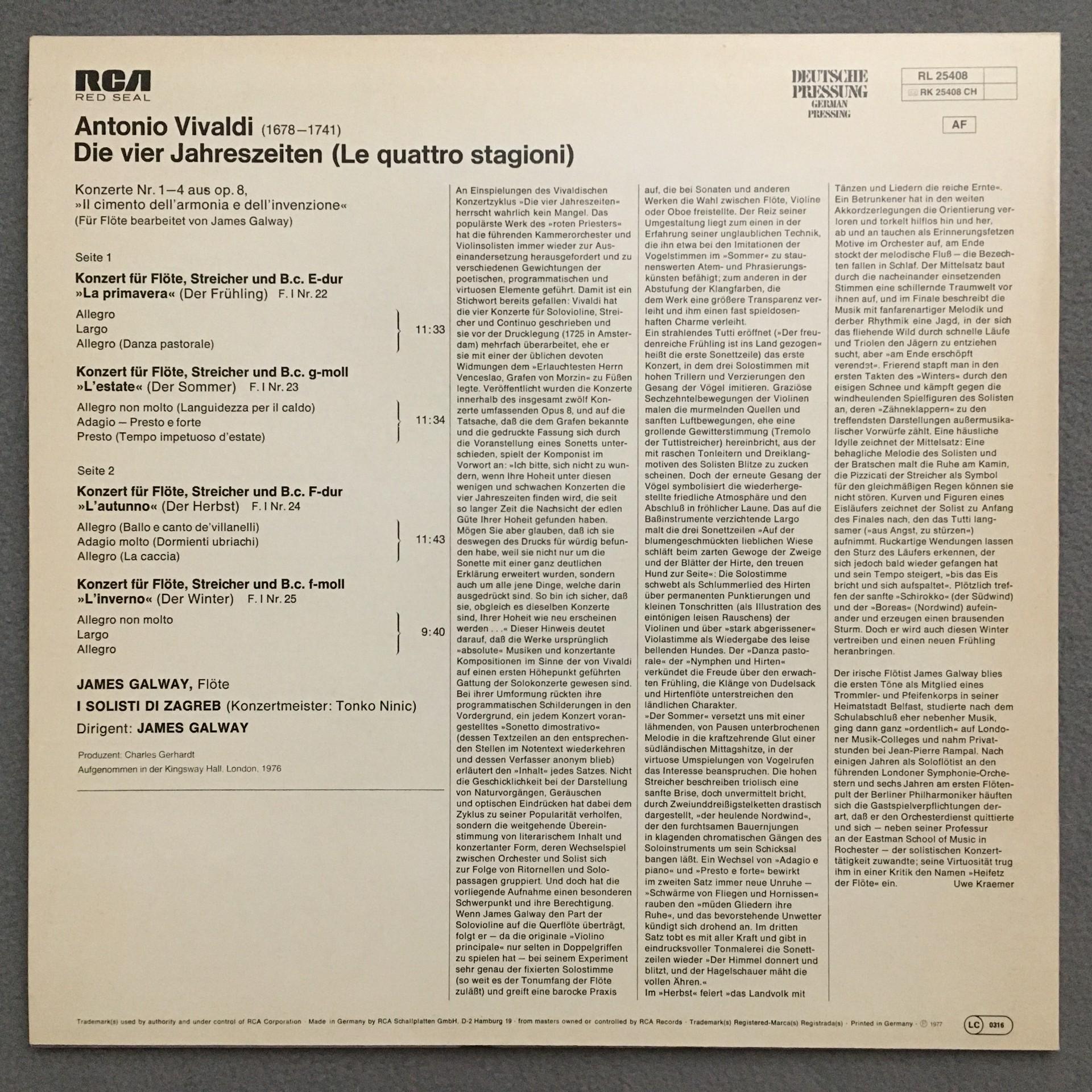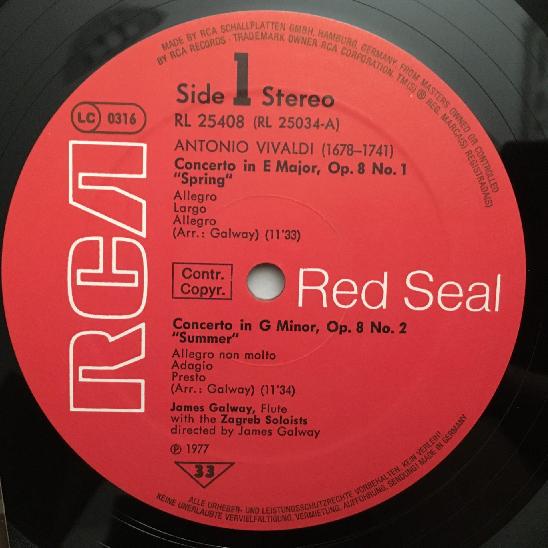 N189 Vivaldi The 4 Seasons Galway Flute RCA Red Seal RL 25408 Stereo