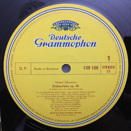 N193 Schumann Dichterliebe Fischer-Dieskau Demus Piano DGG 139 109 Stereo