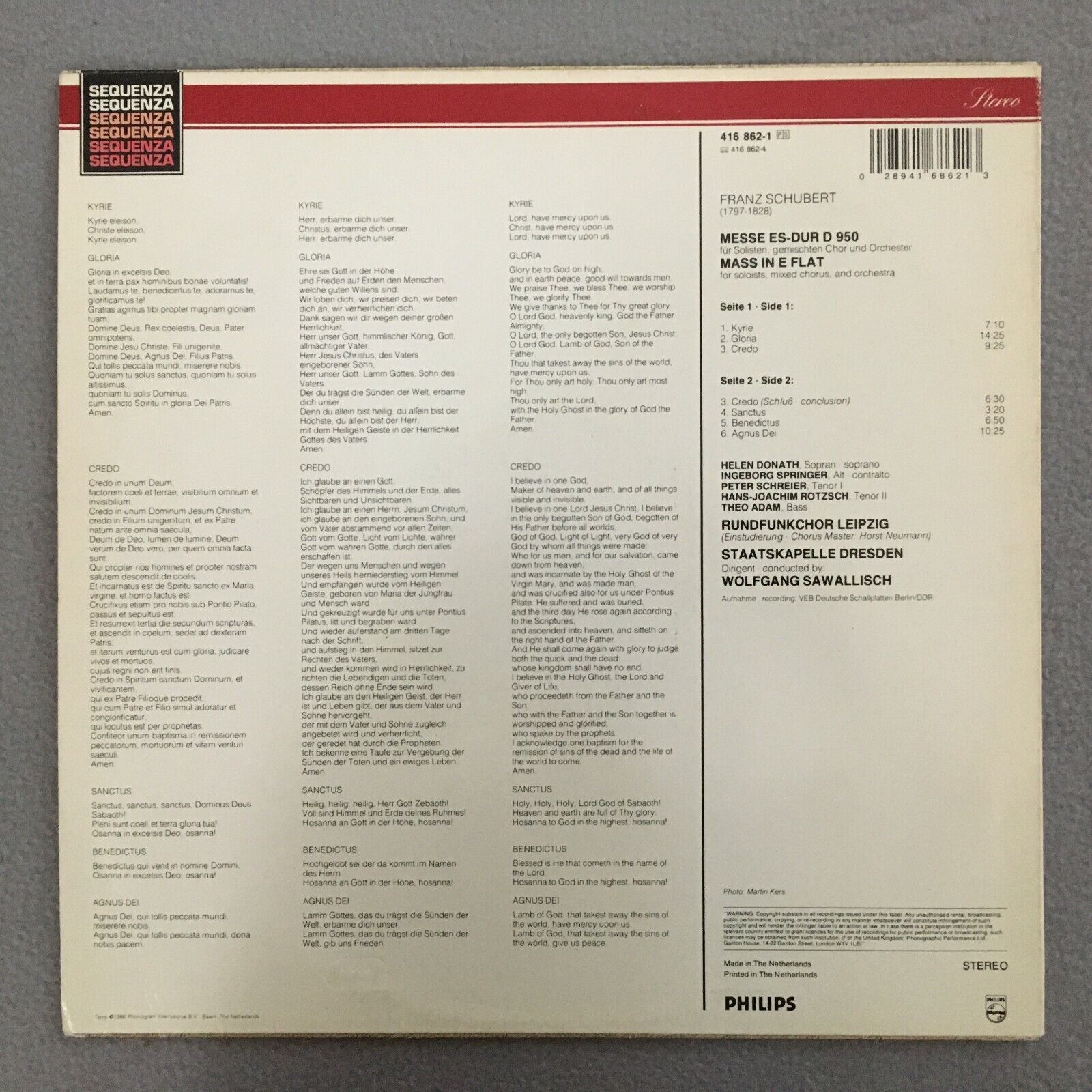 Y937 Schubert Mass Schreier Donath Adam Sawallisch Philips 416 862-1 Stereo