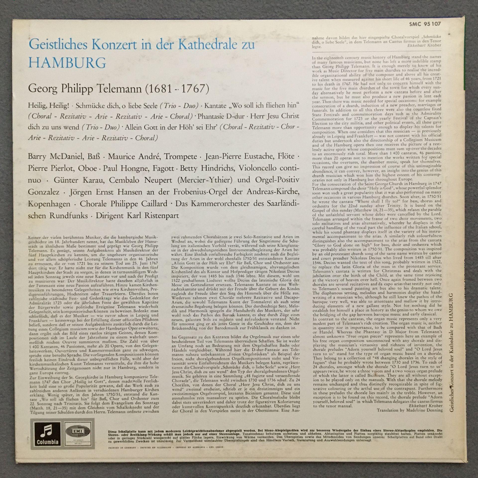 N209 Telemann Festive Concerto Hamburg Ristenpart Columbia w/g SMC 95 107 St