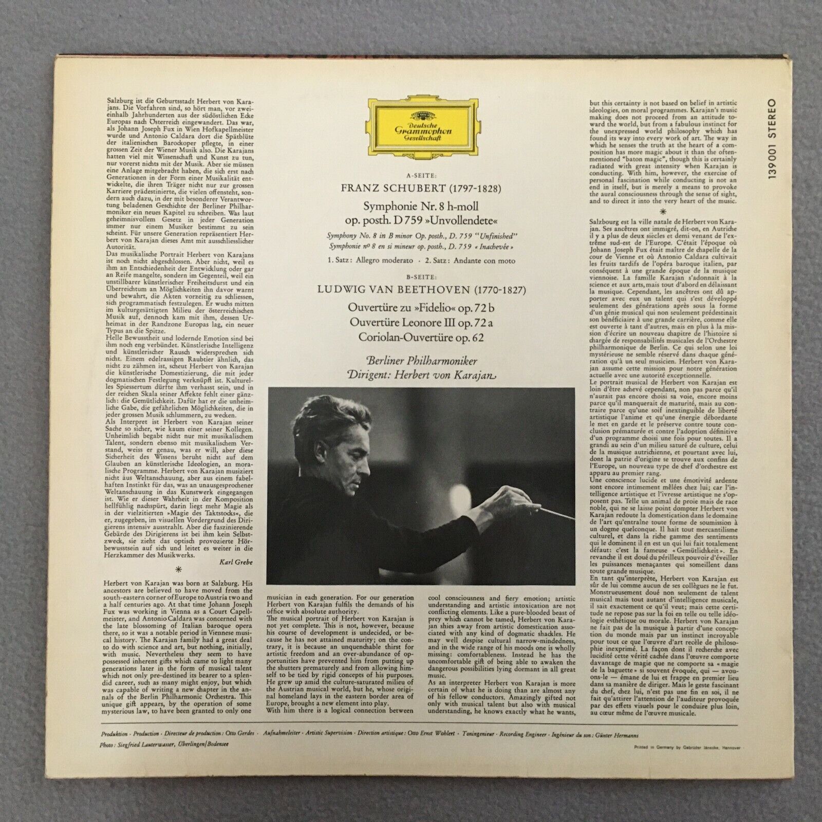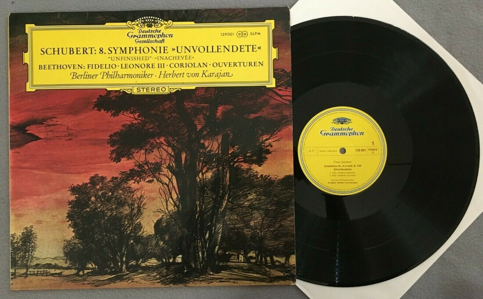 Y940 Schubert Symphony No.8 Beethoven Overtures Karajan BPO DGG 139 001 SLPM St