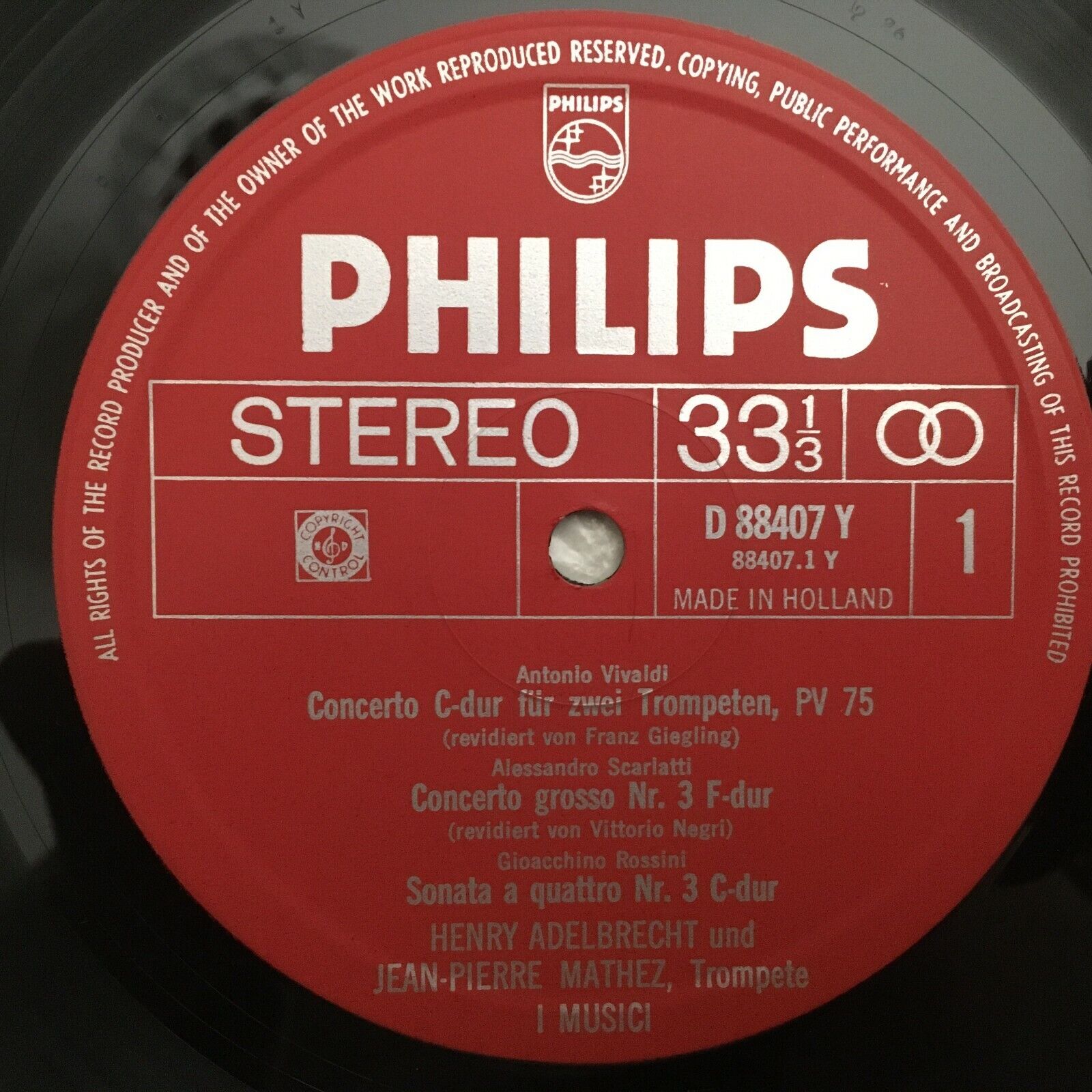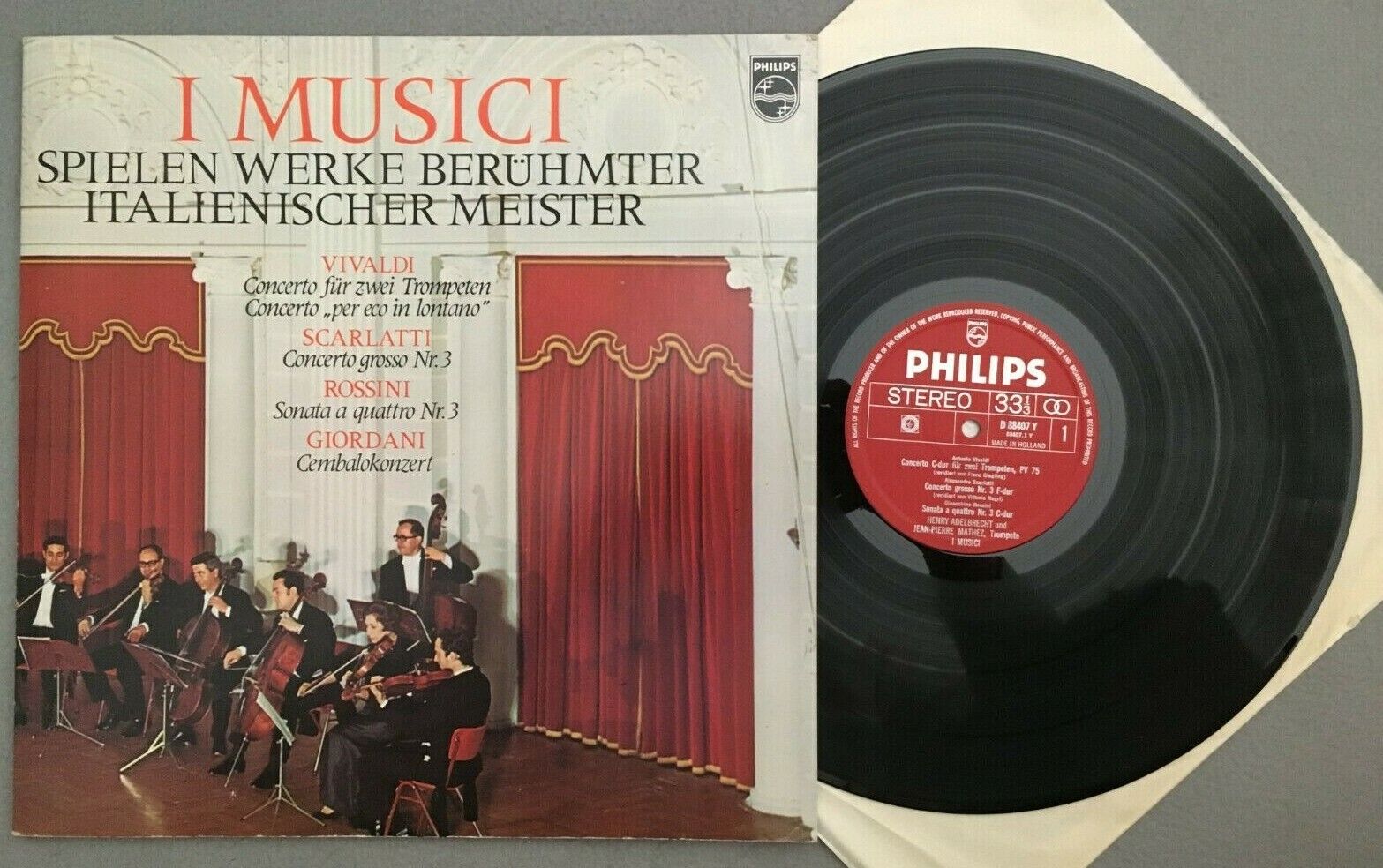 V372 I Musici Vivaldi Trumpet Concerto Rossini Sonata Philips D 88407 Y Stereo