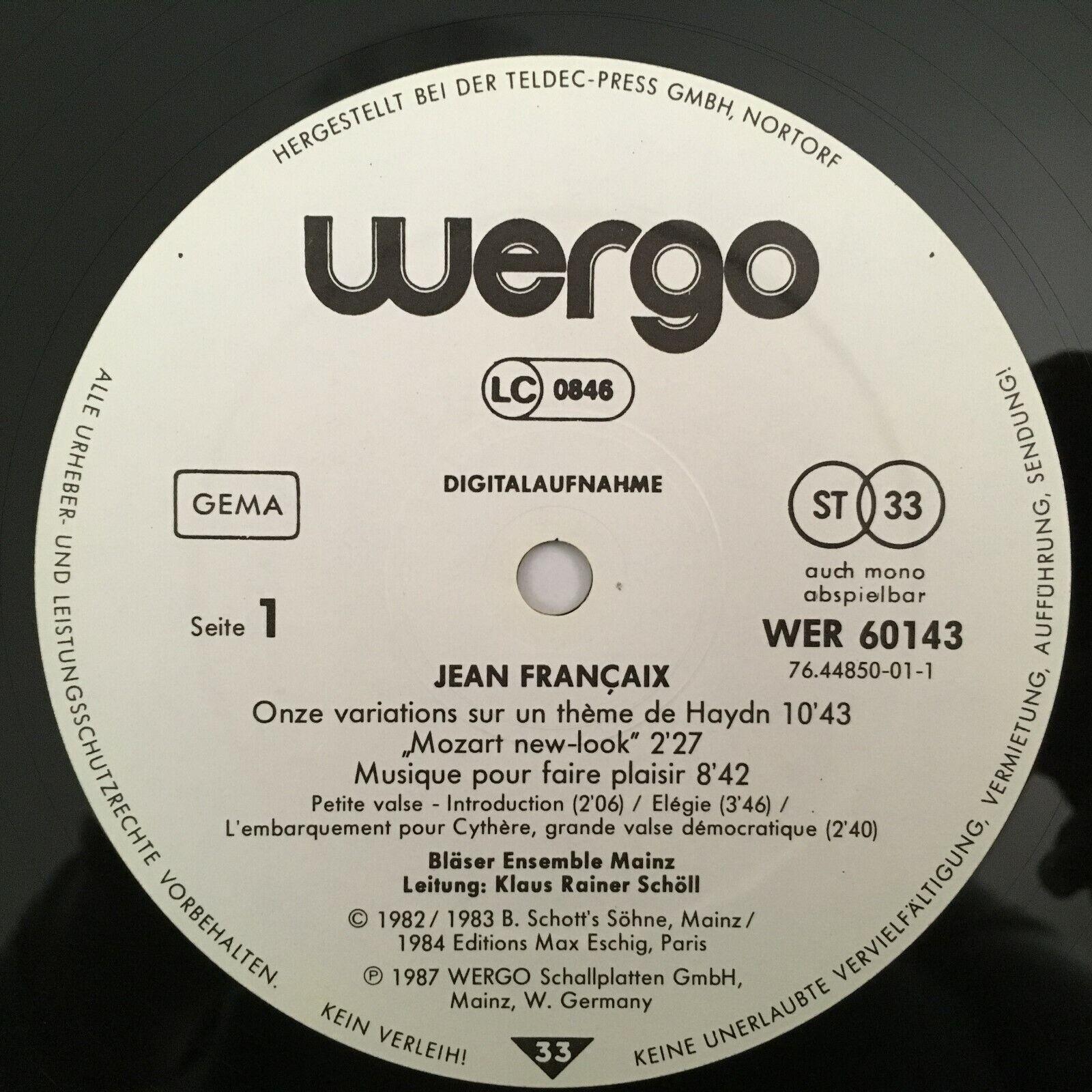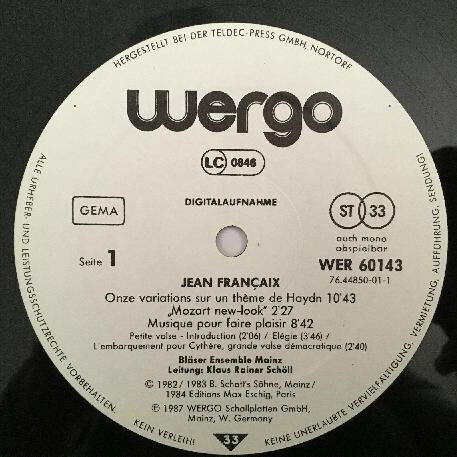 P409 Francaix Musique pour faire plaisir Wergo WER 60143 Digital Stereo