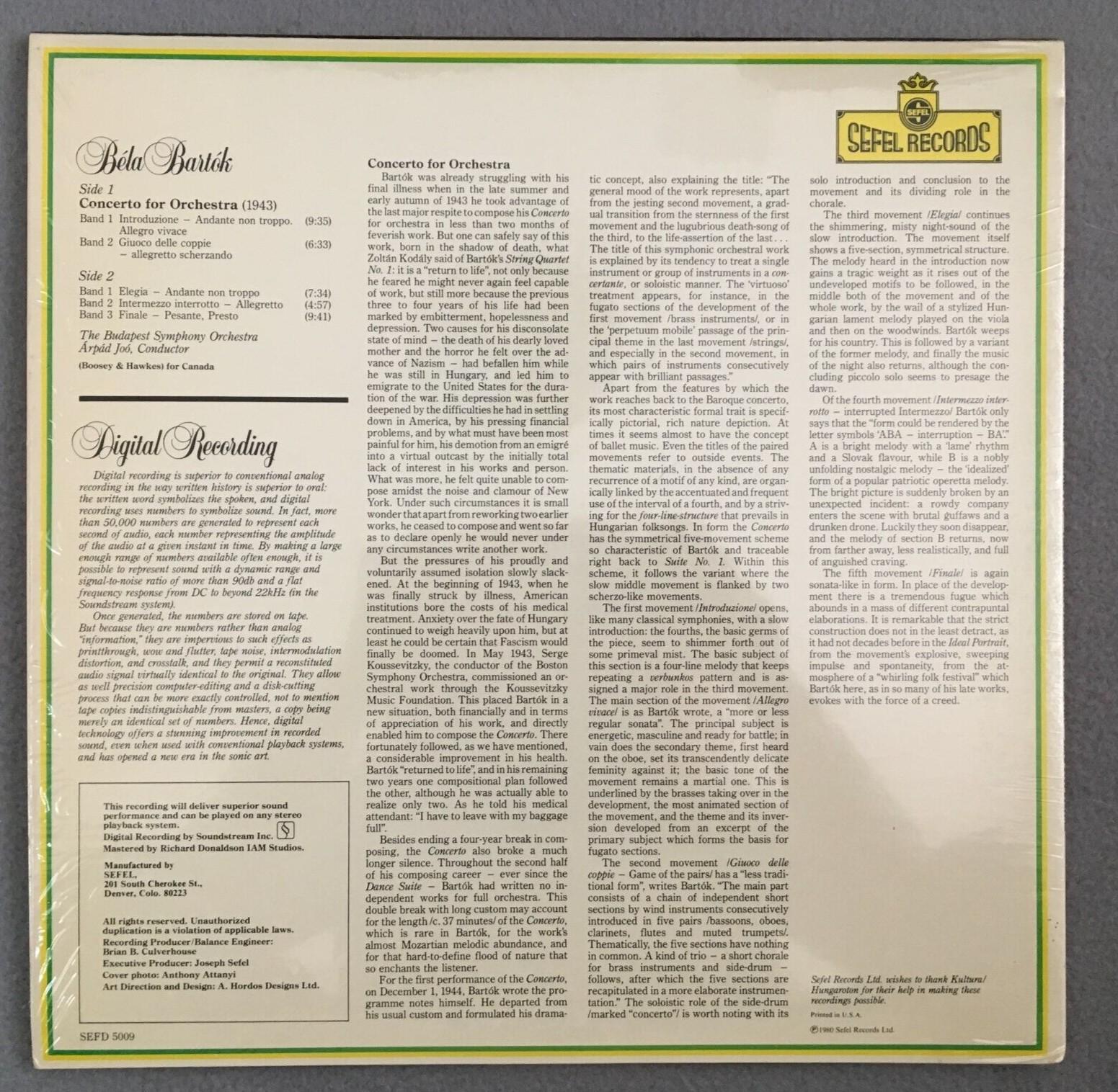 P420 Bartok Orchestra Concerto Joo Sefel Records SEFD 5009 Digital St - Shrink