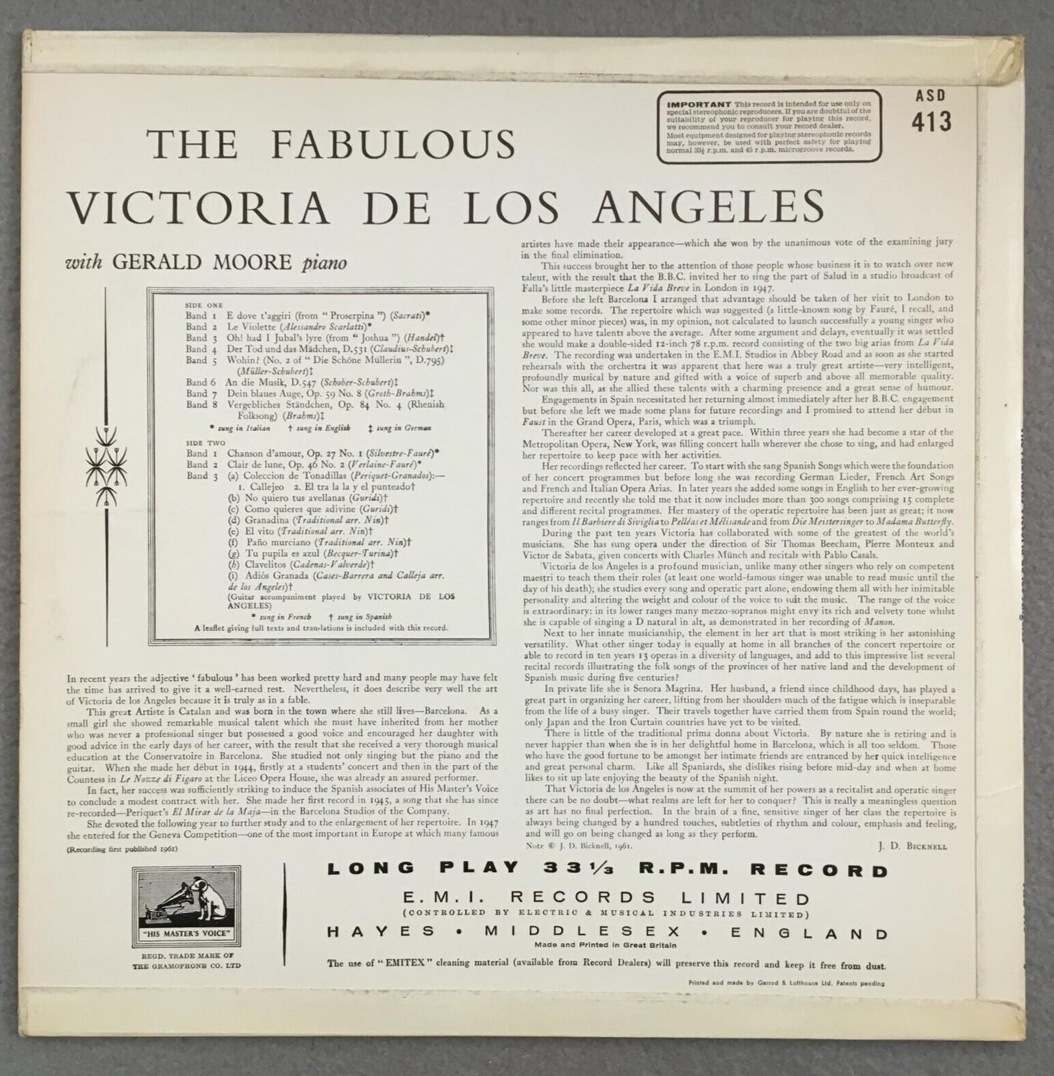 P429 The Fabulous Victoria de Los Angeles A Recital Moore HMV ASD 413 Stereo