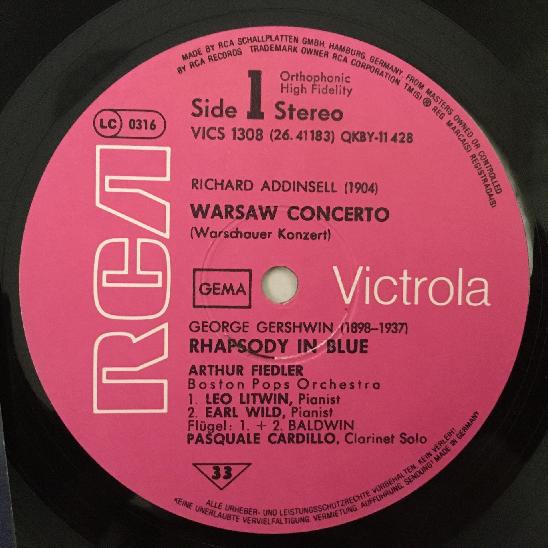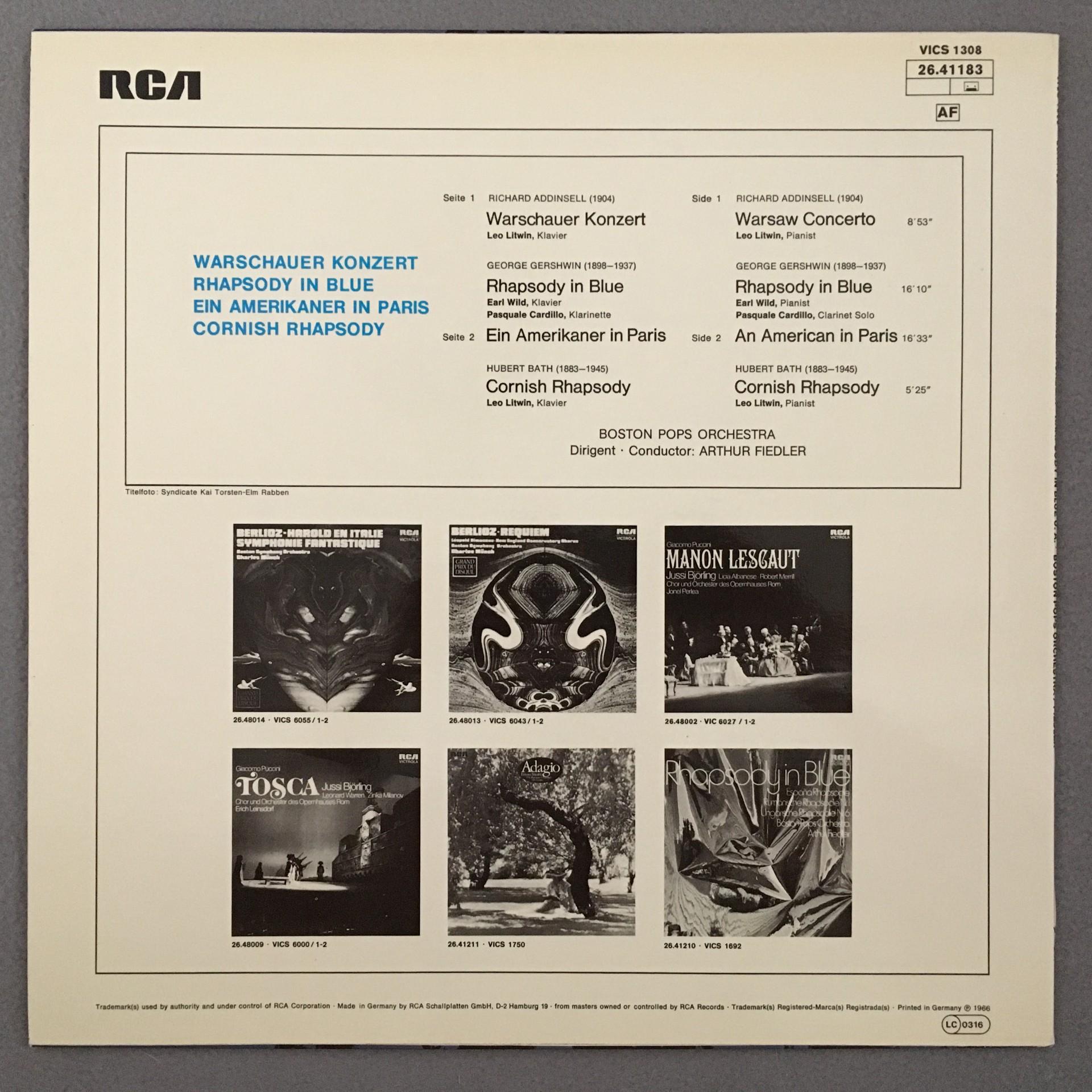 N215 Gershwin Rhapsody in Blue Addinsell Bath Fiedler RCA VICS 1308 Stereo