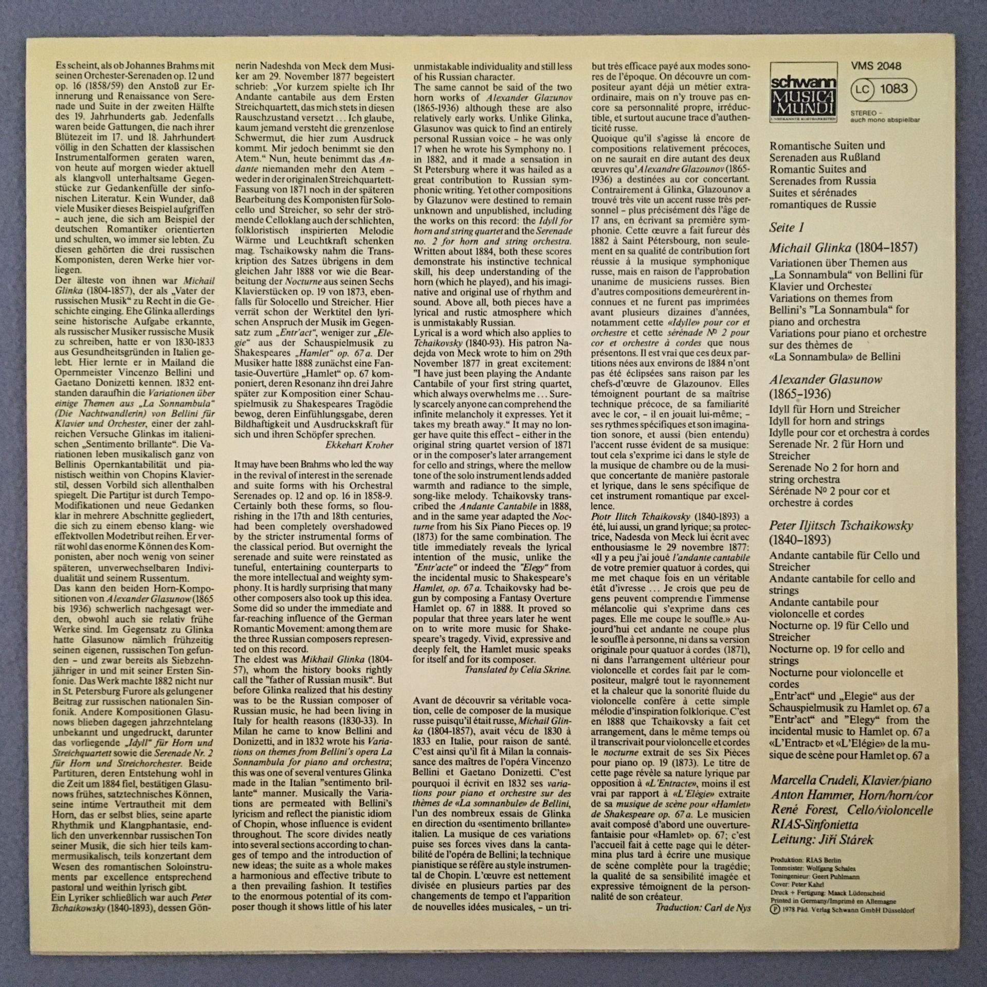 N235 Suites & Serenades From Russia Tchaikovsky Starek Schwann VMS 2048 Stereo