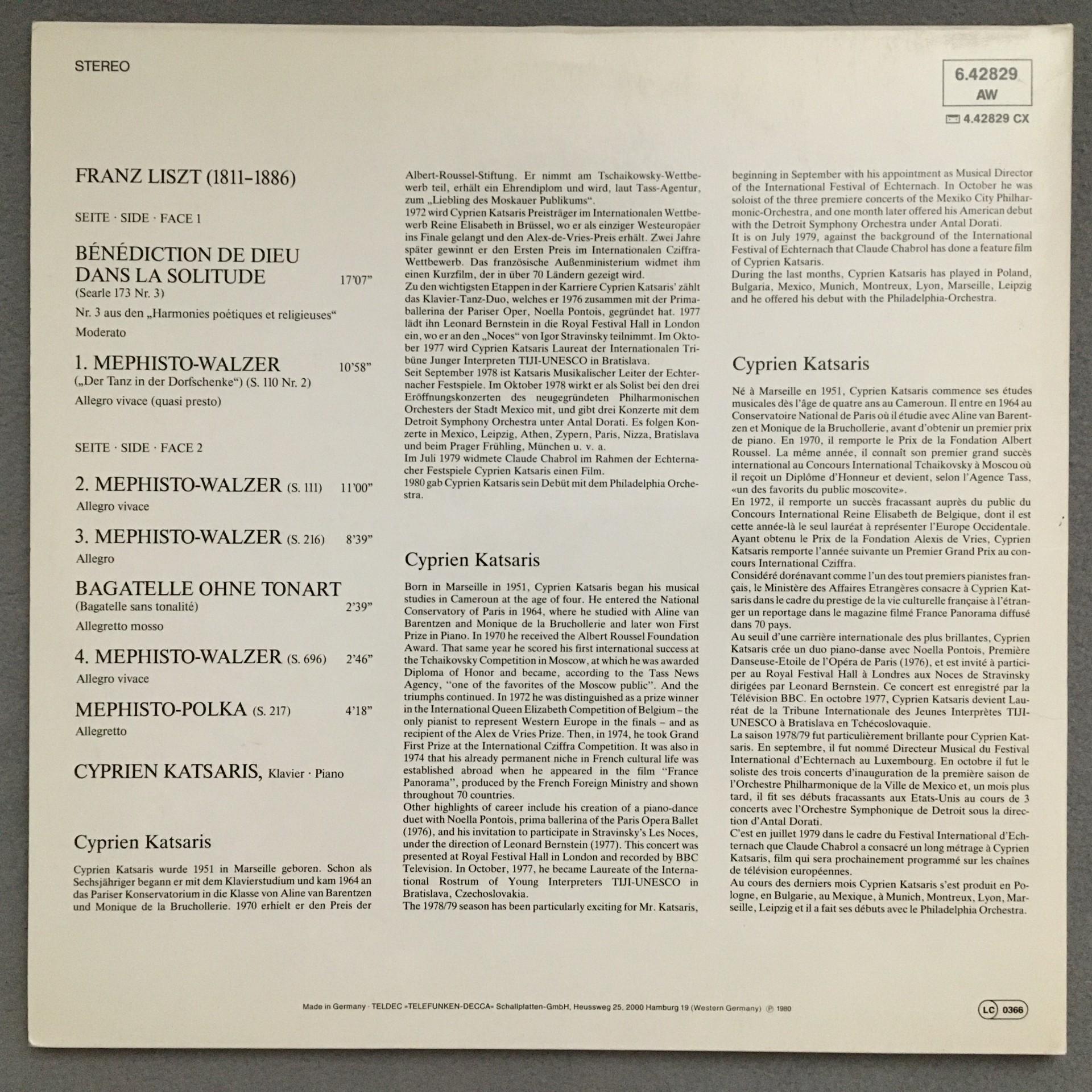 N242 Liszt Mephisto Waltz 1-4 Polka Katsaris Telefunken 6.42829 AW Stereo