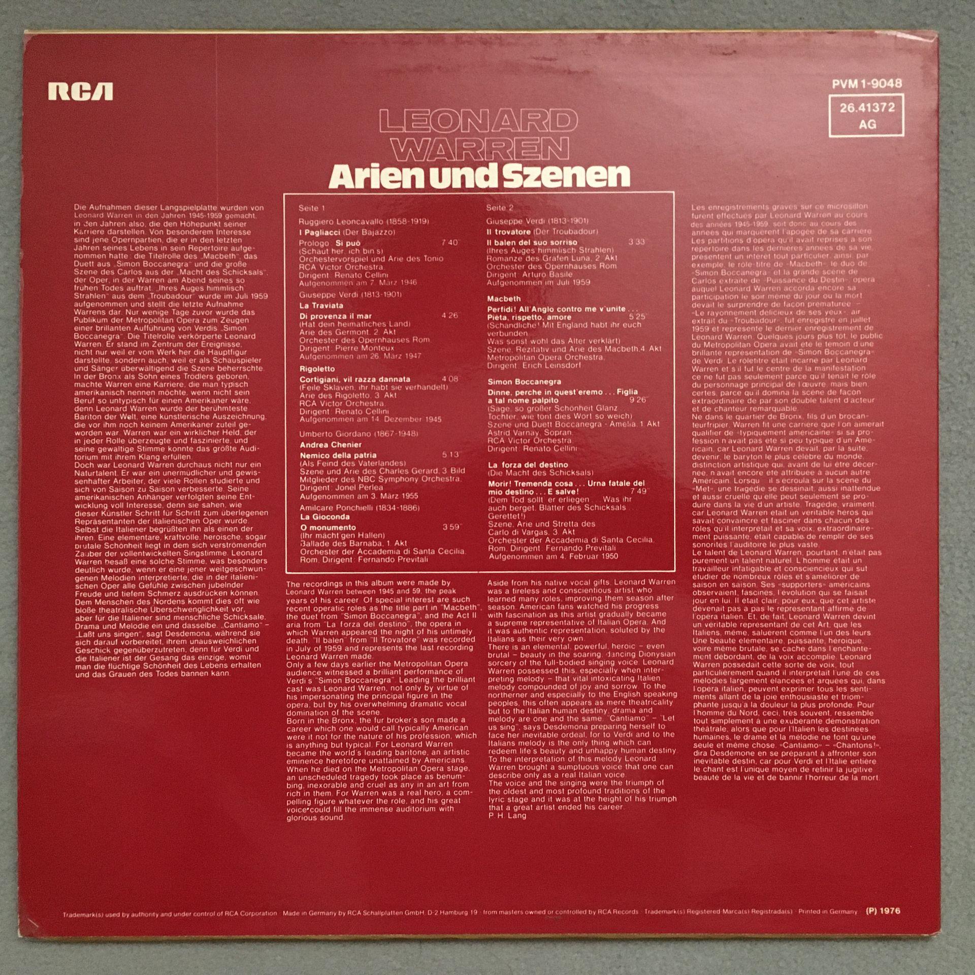 N243 Leonard Warren Arias & Scenes RCA 26.41372 AG Stereo