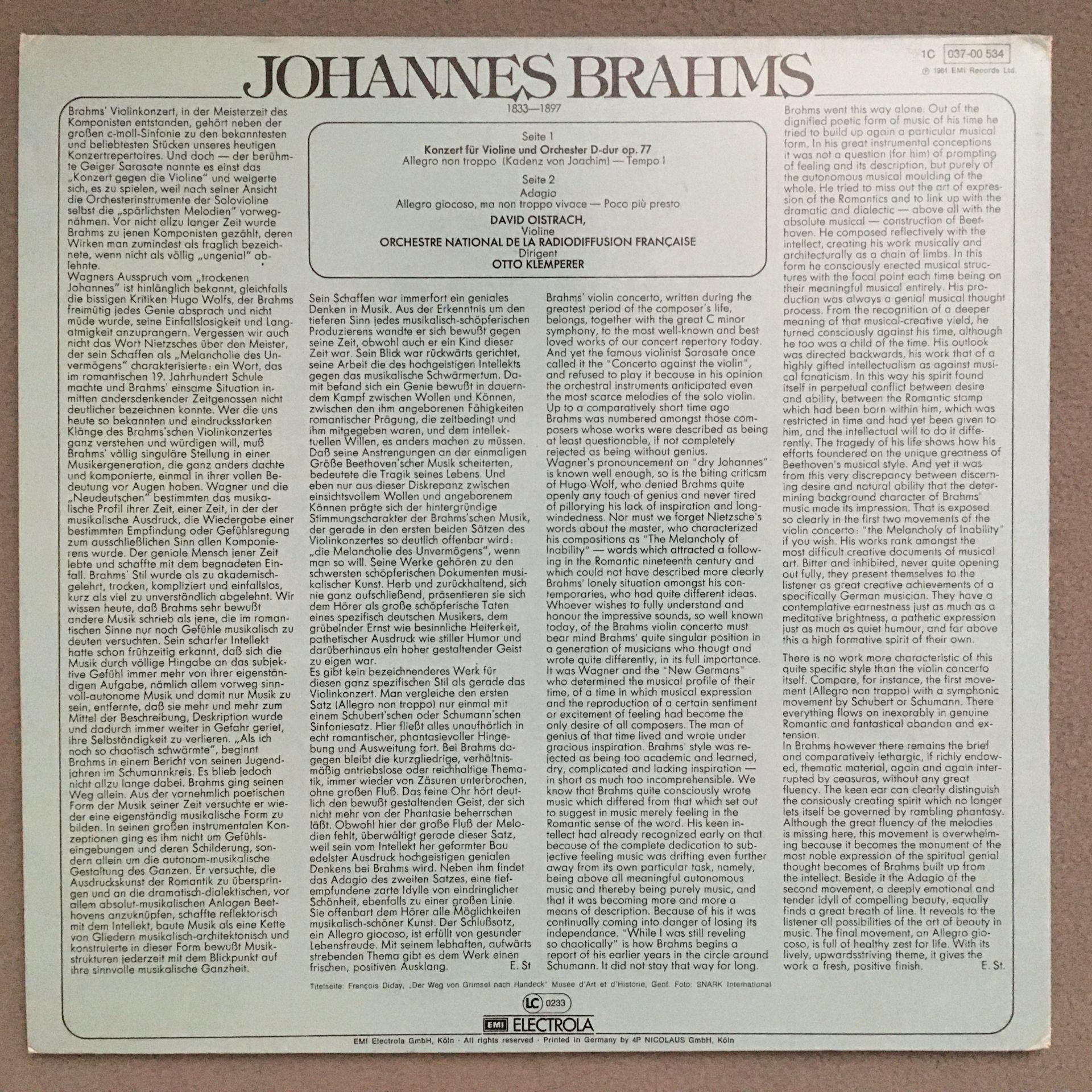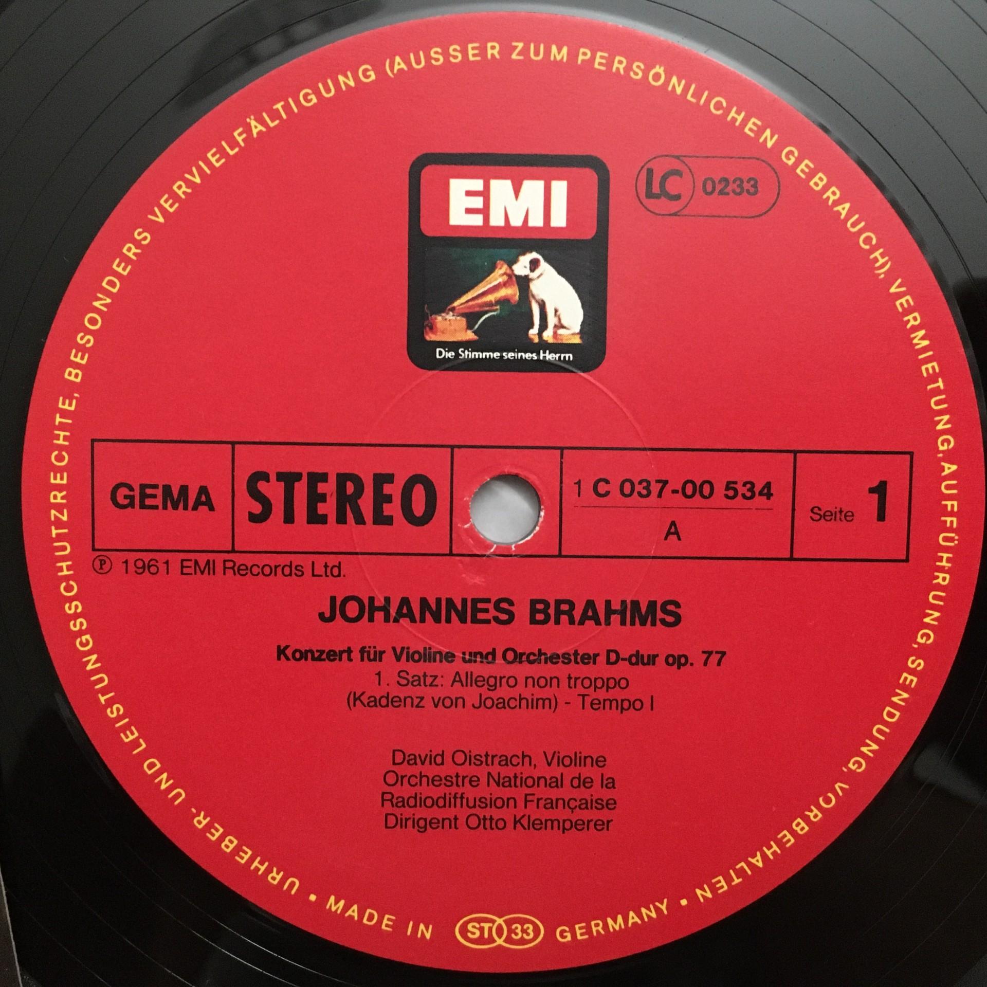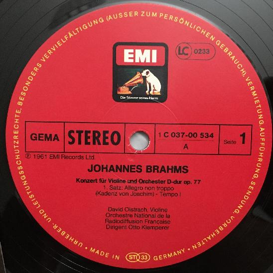 N246 Brahms Violin Concerto Oistrakh Klemperer EMI 1C 037-00 534 Stereo