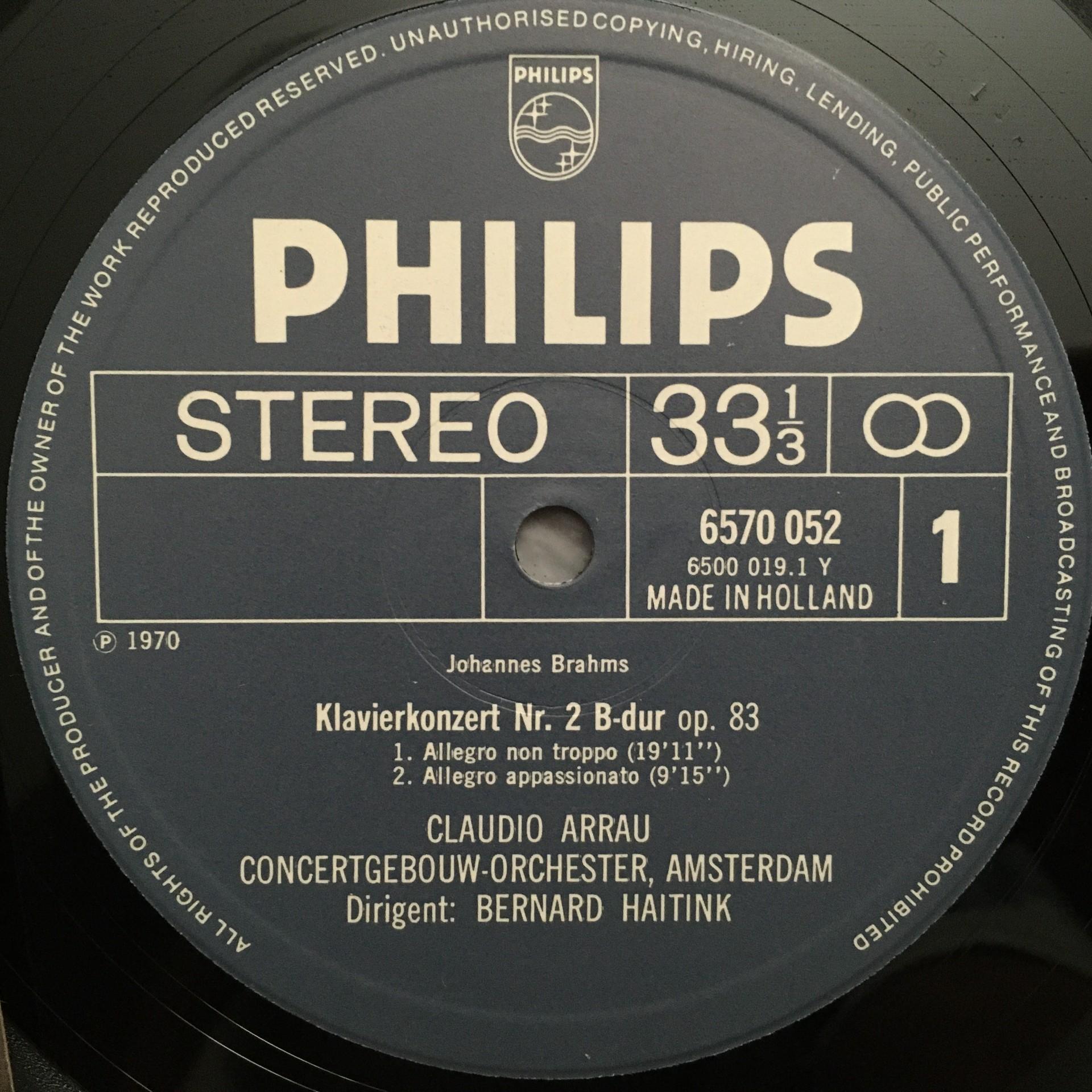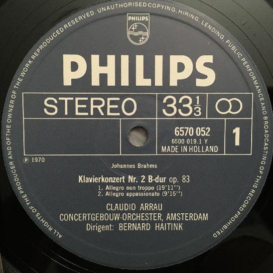 N255 Brahms Piano Concerto No.2 Arrau Haitink Philips 6570 052 Stereo