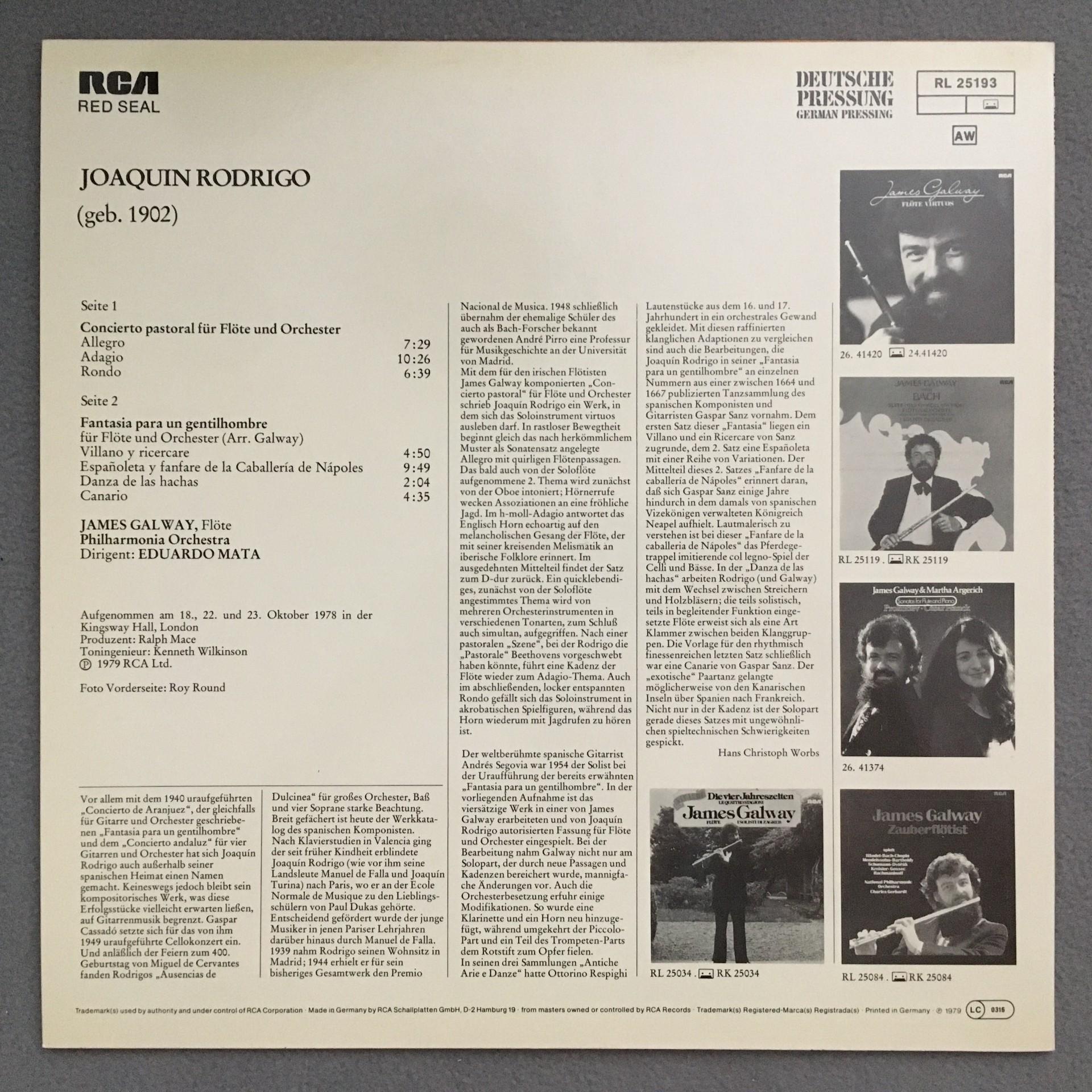 N269 Rodrigo Concerto Galway Flute Mata RCA RL 25193 Stereo