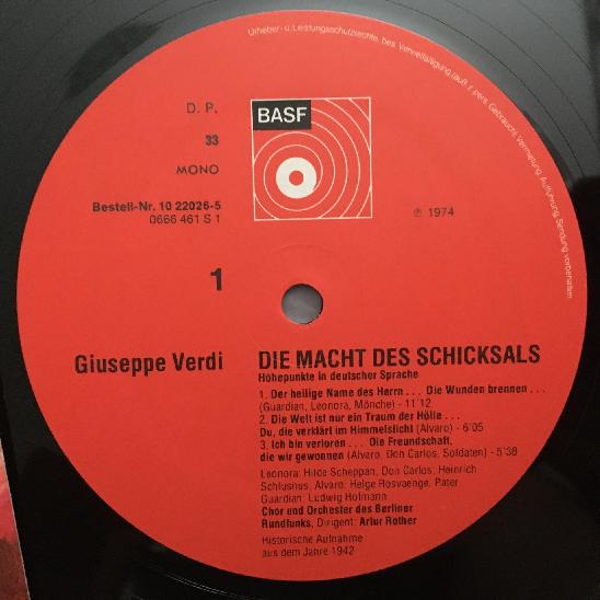 N272 Verdi Die Macht des Schicksals Scheppan Rother BASF 10 22026-5 Stereo