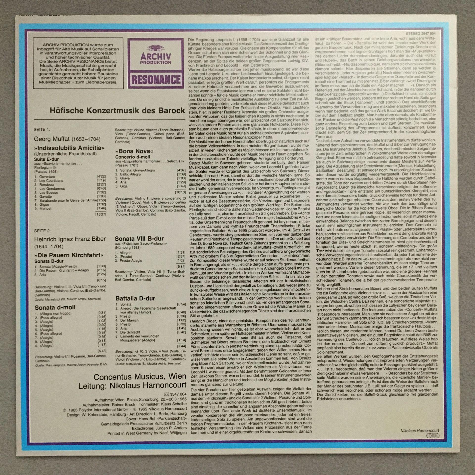 N289 Baroque Concert Music Muffat Biber Harnoncourt DGG Archiv 2547 004 Stereo