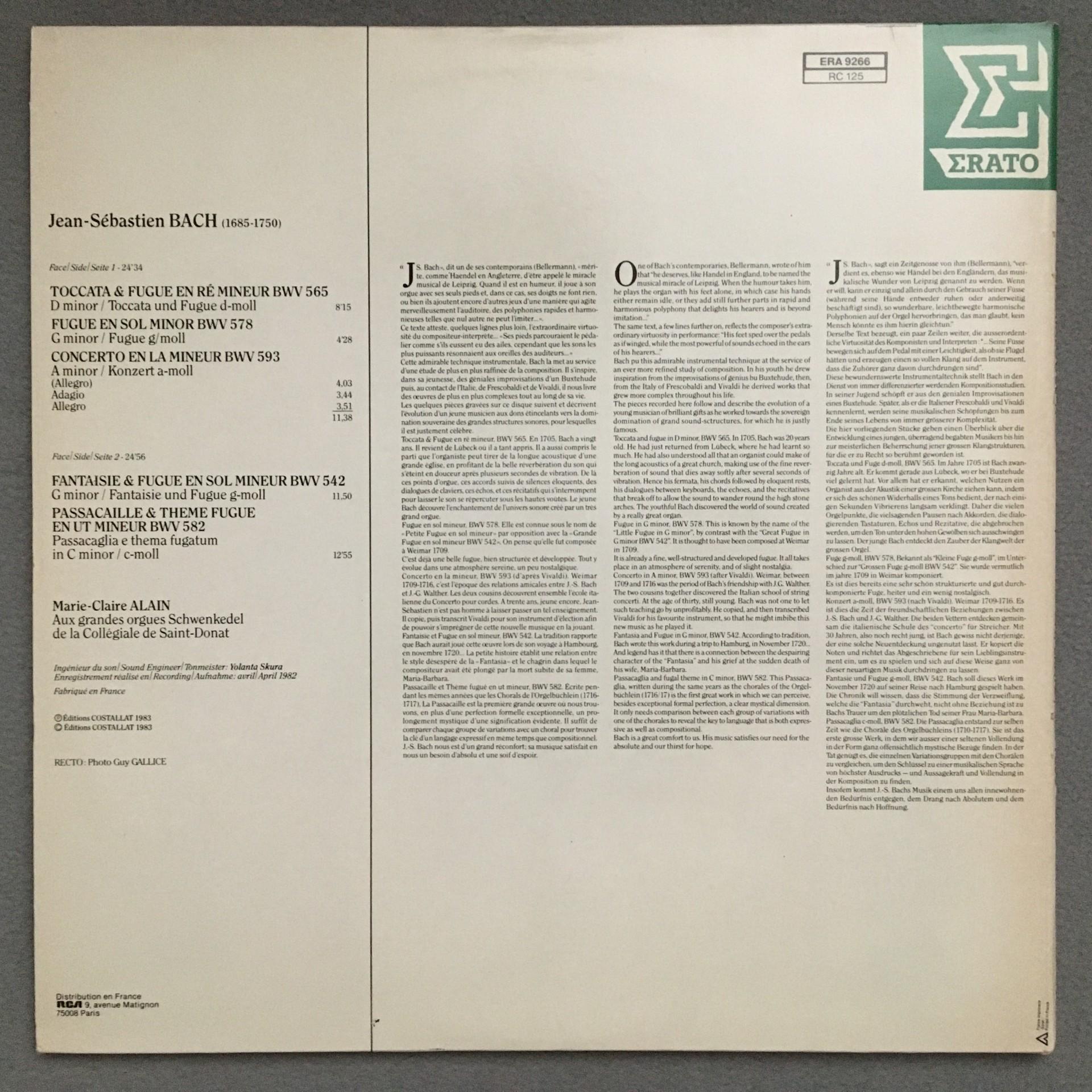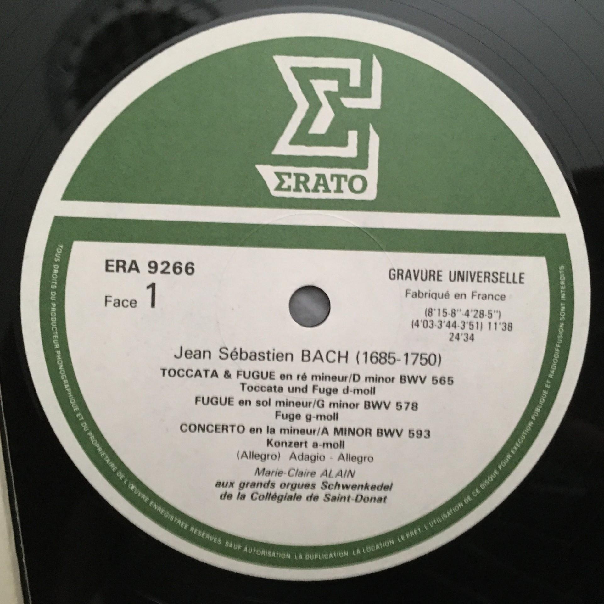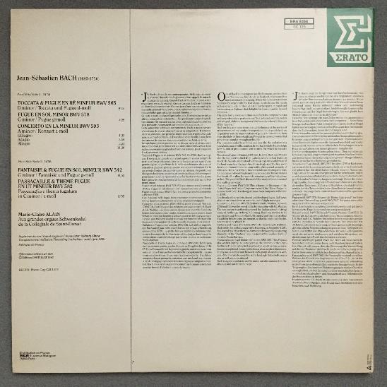 N291 Bach Toccata & Fugue Alain Organ Erato ERA 9266 Stereo