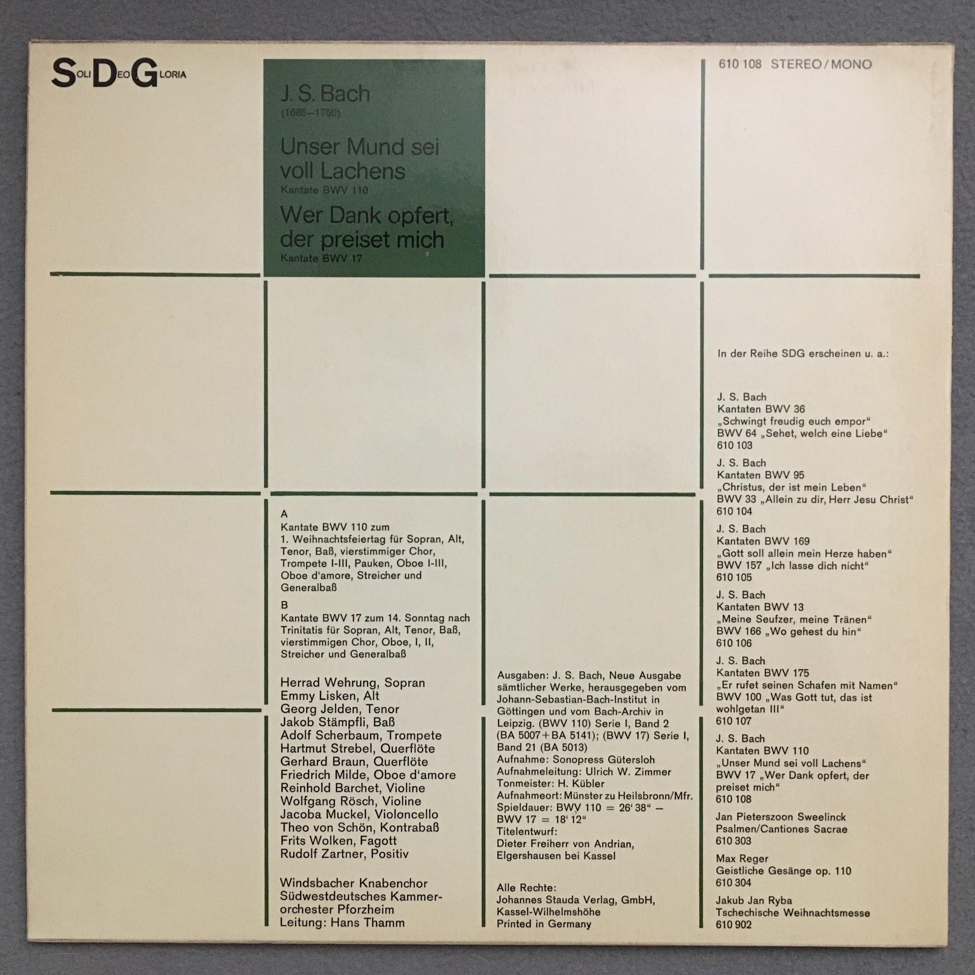 N300 Bach Cantatas Wehrung Lisken Stämpfli Thamm SDG 610 108 Stereo