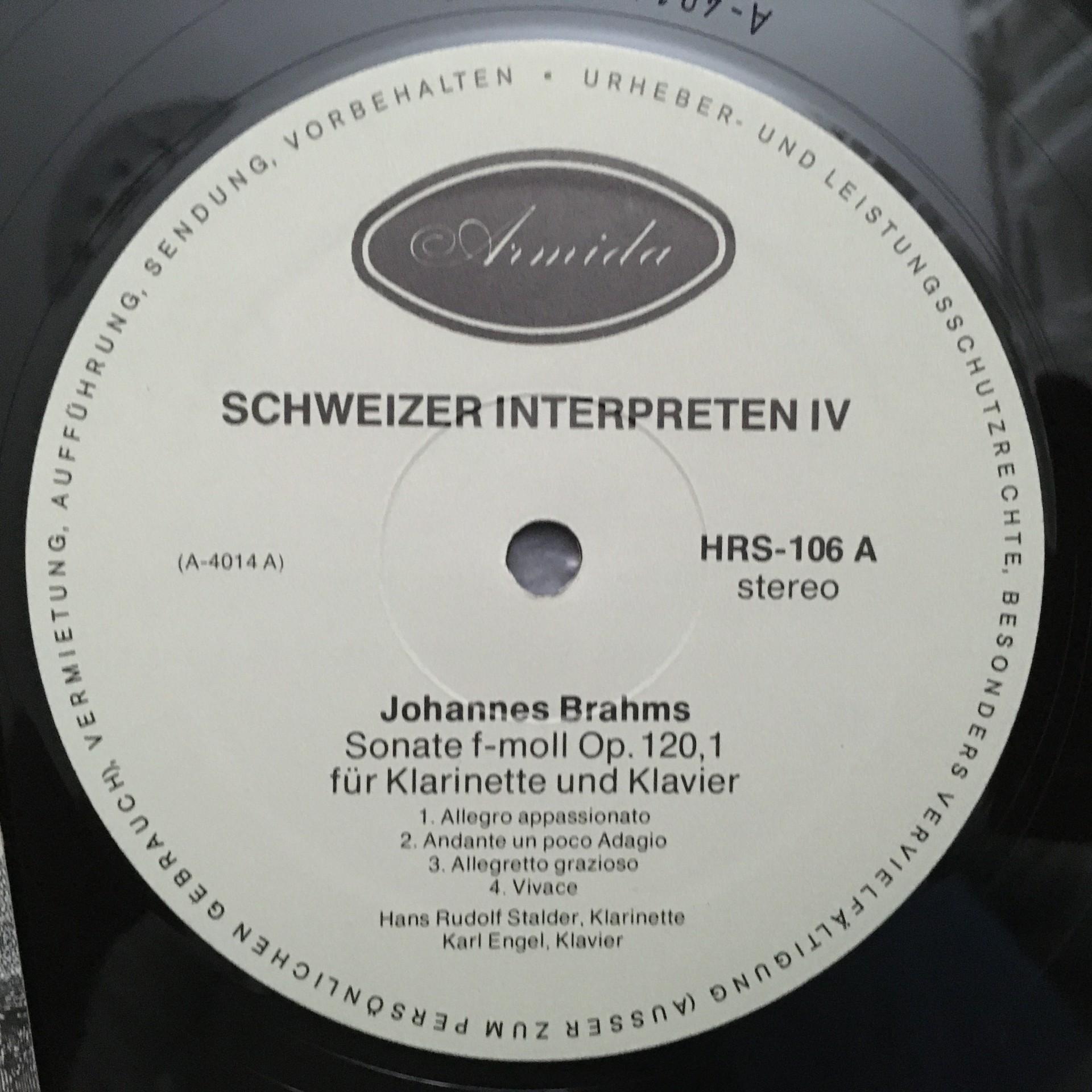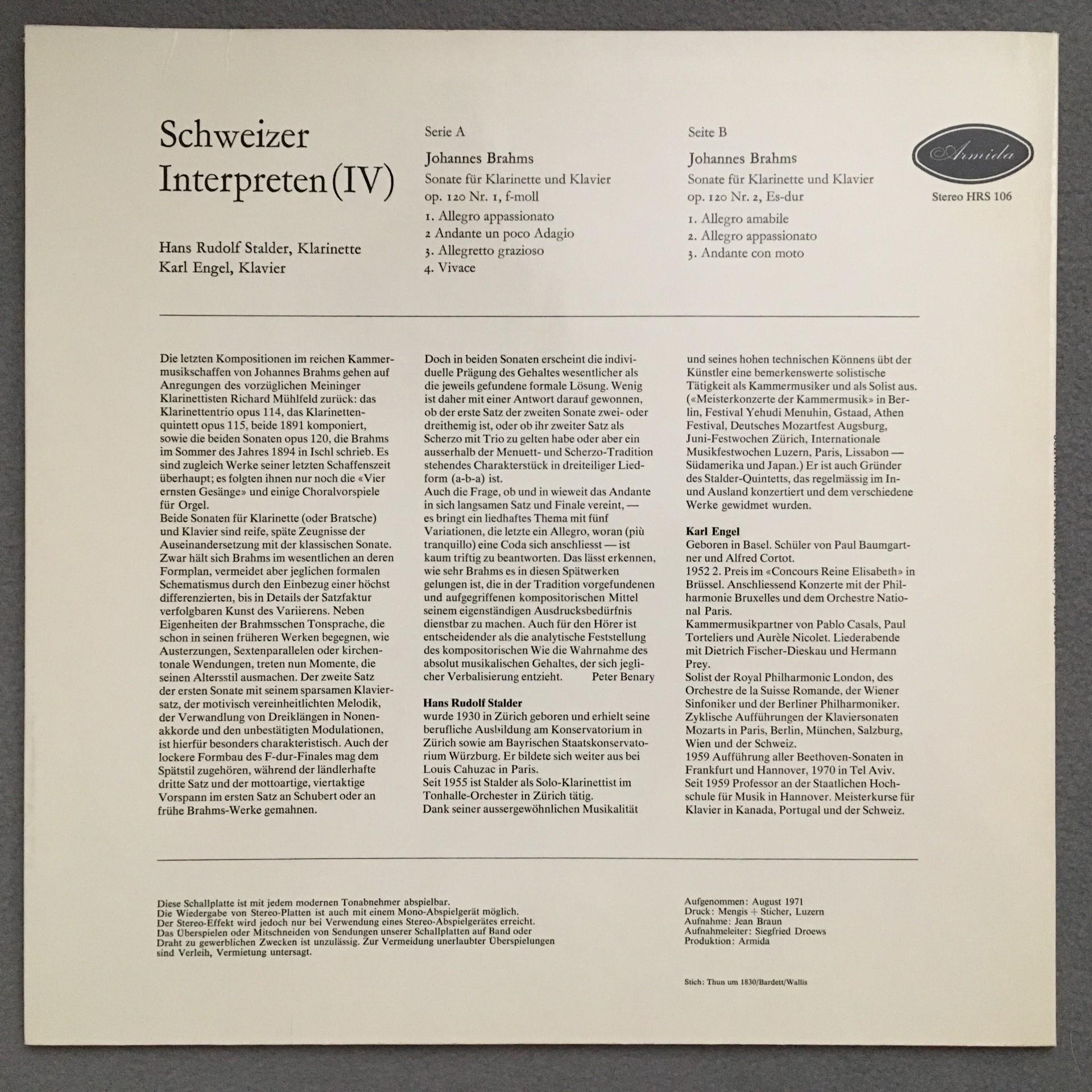 N325 Brahms Sonatas Stalder Clarinet Engel Piano Armida HRS 106 Stereo