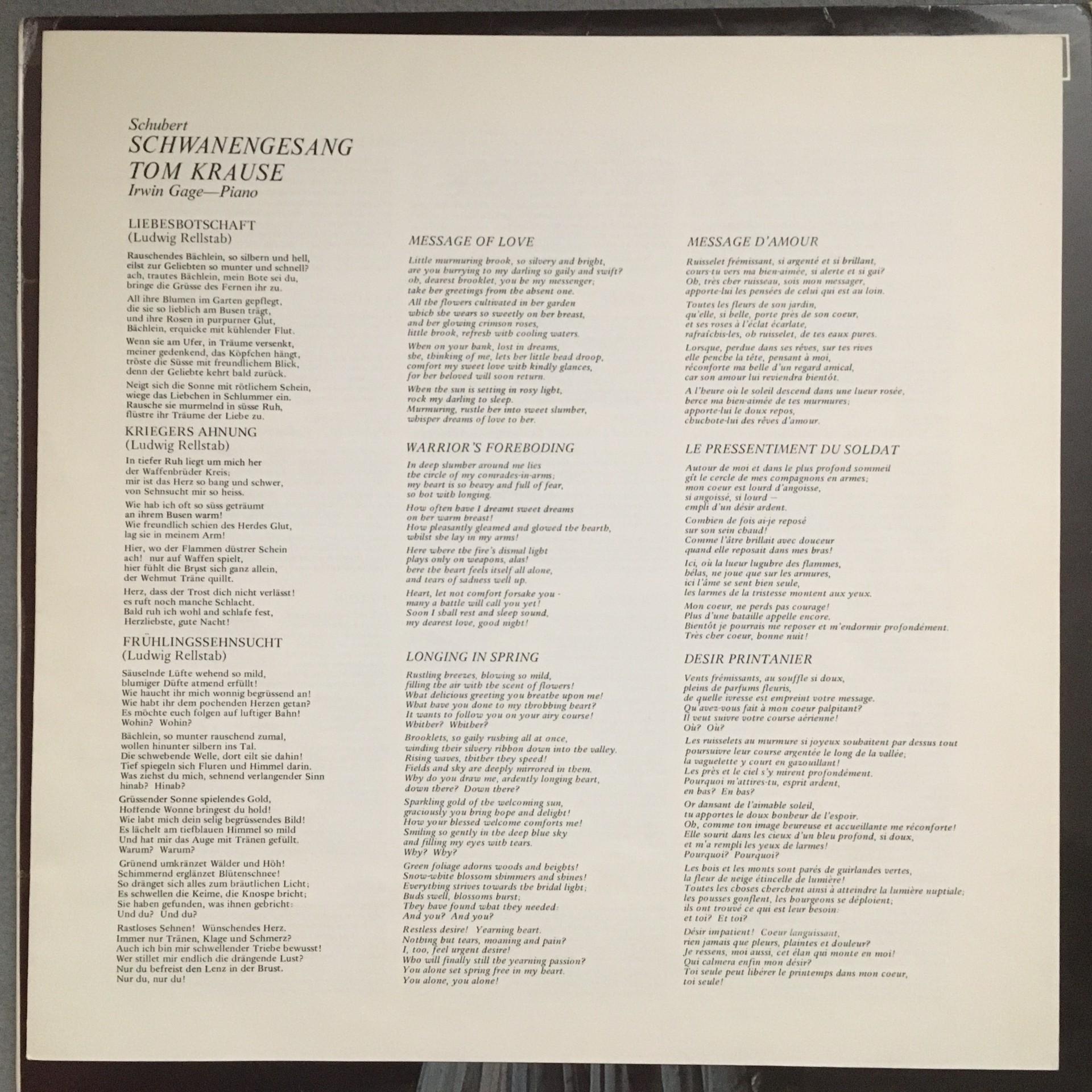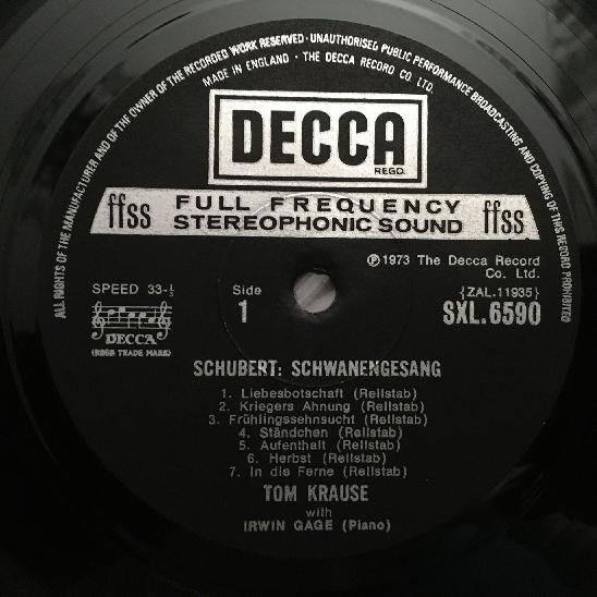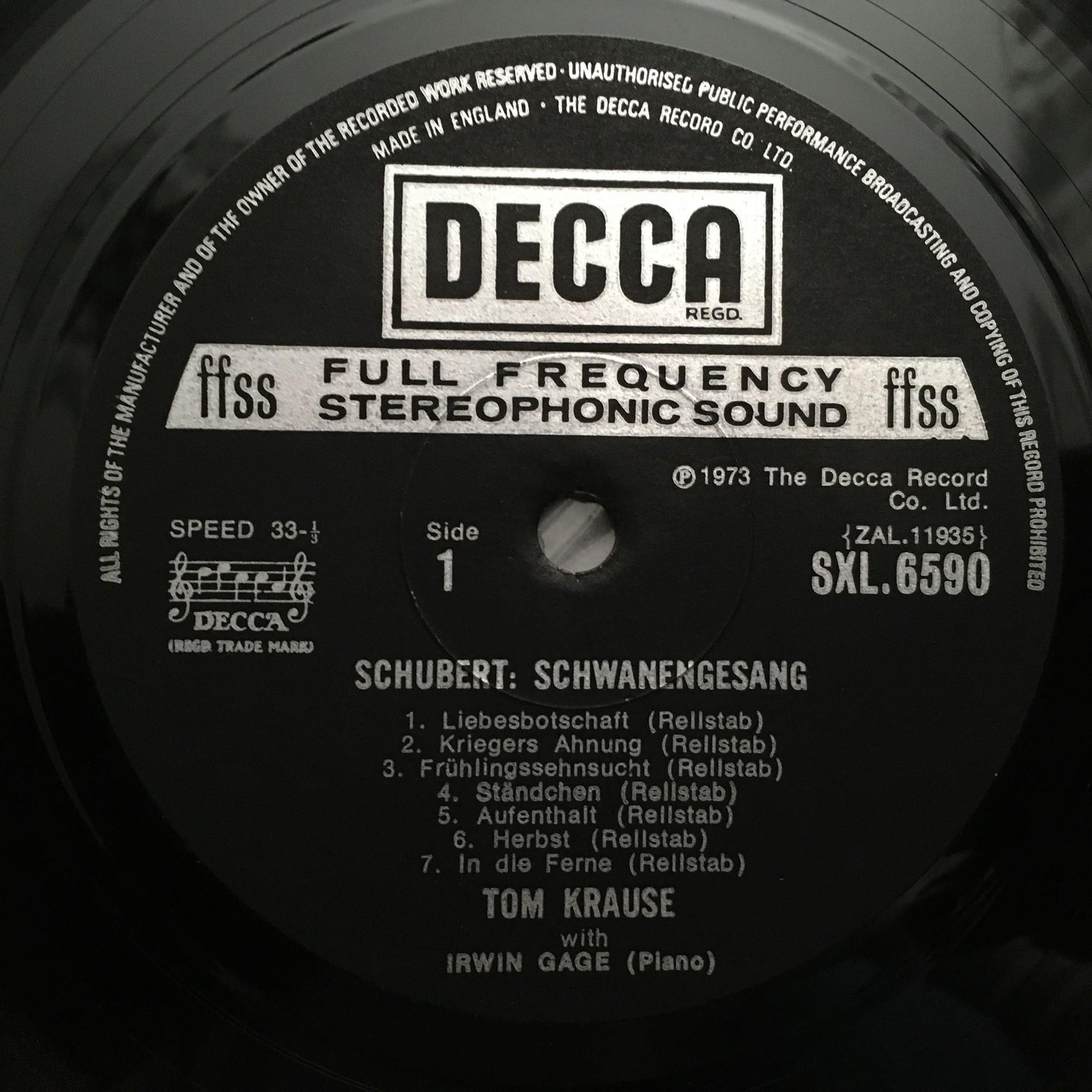 N326 Schubert Swan Singing Krause Gage Piano DECCA SXL 6590 Stereo