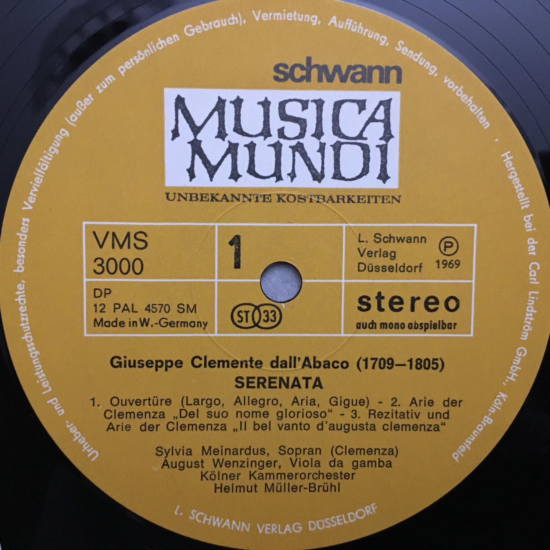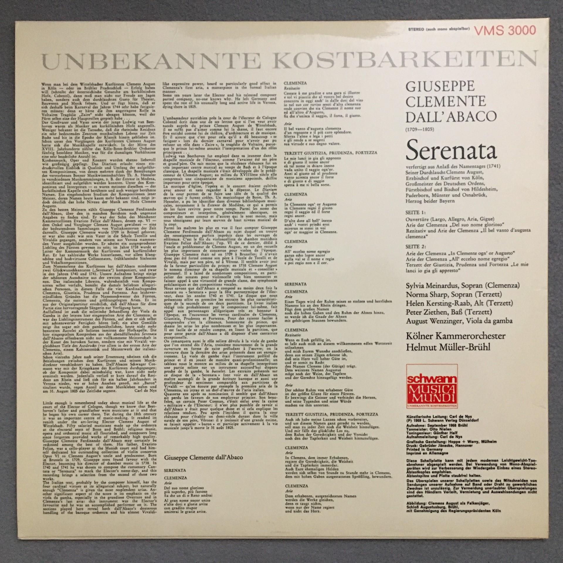 N328 Dall´Abaco Serenata Meinardus Müller-Brühl Schwann VMS 3000 Stereo
