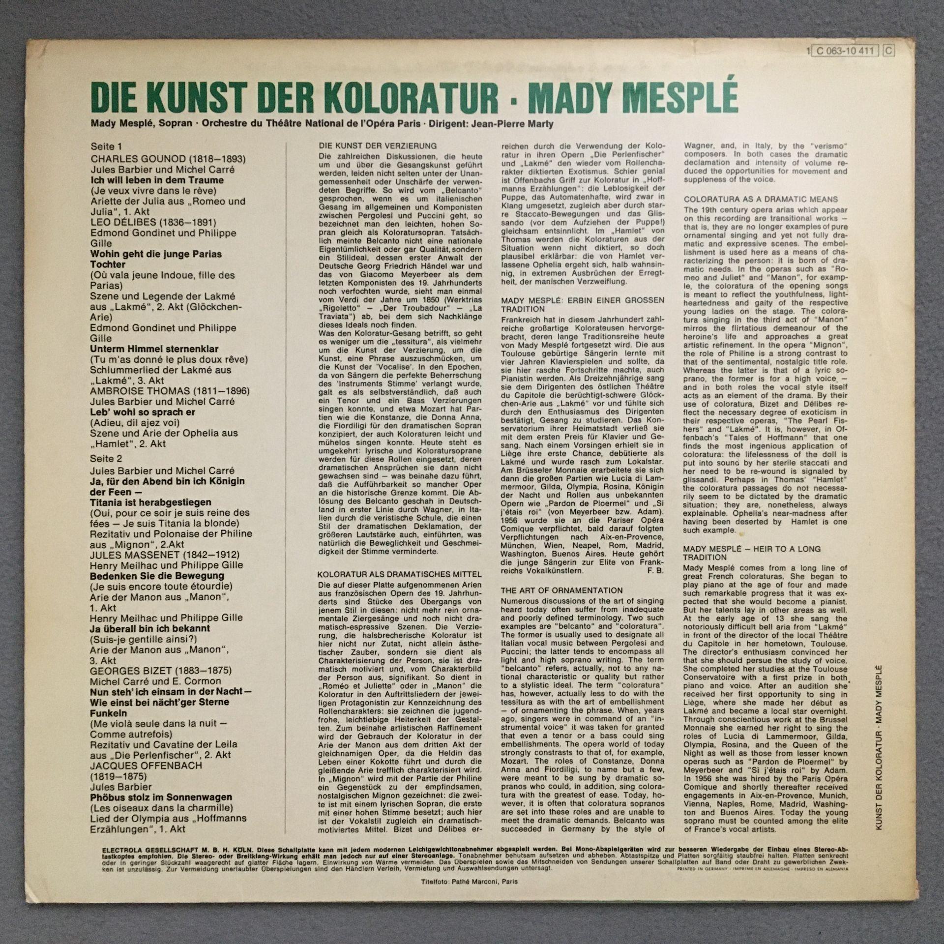 N337 Mady Mesple Arias Marty EMI 1 C 063-10 411 Stereo