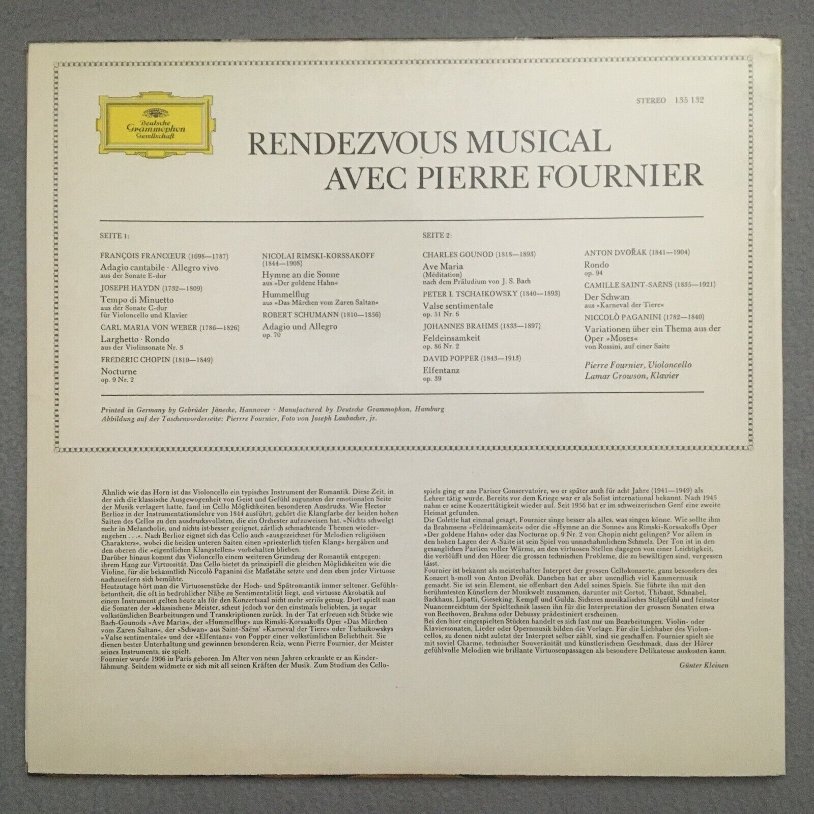 S006 Fournier Rendezvous Musical Schumann Brahms Tchaikovsky DGG 135 132 Stereo