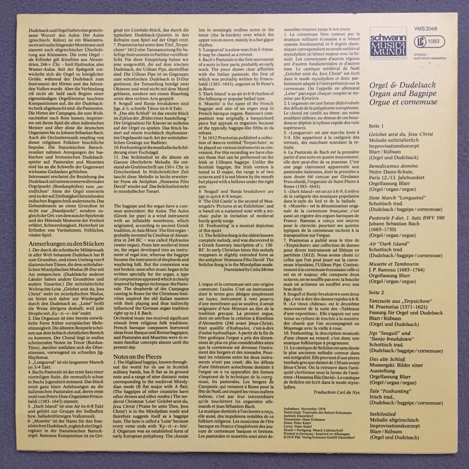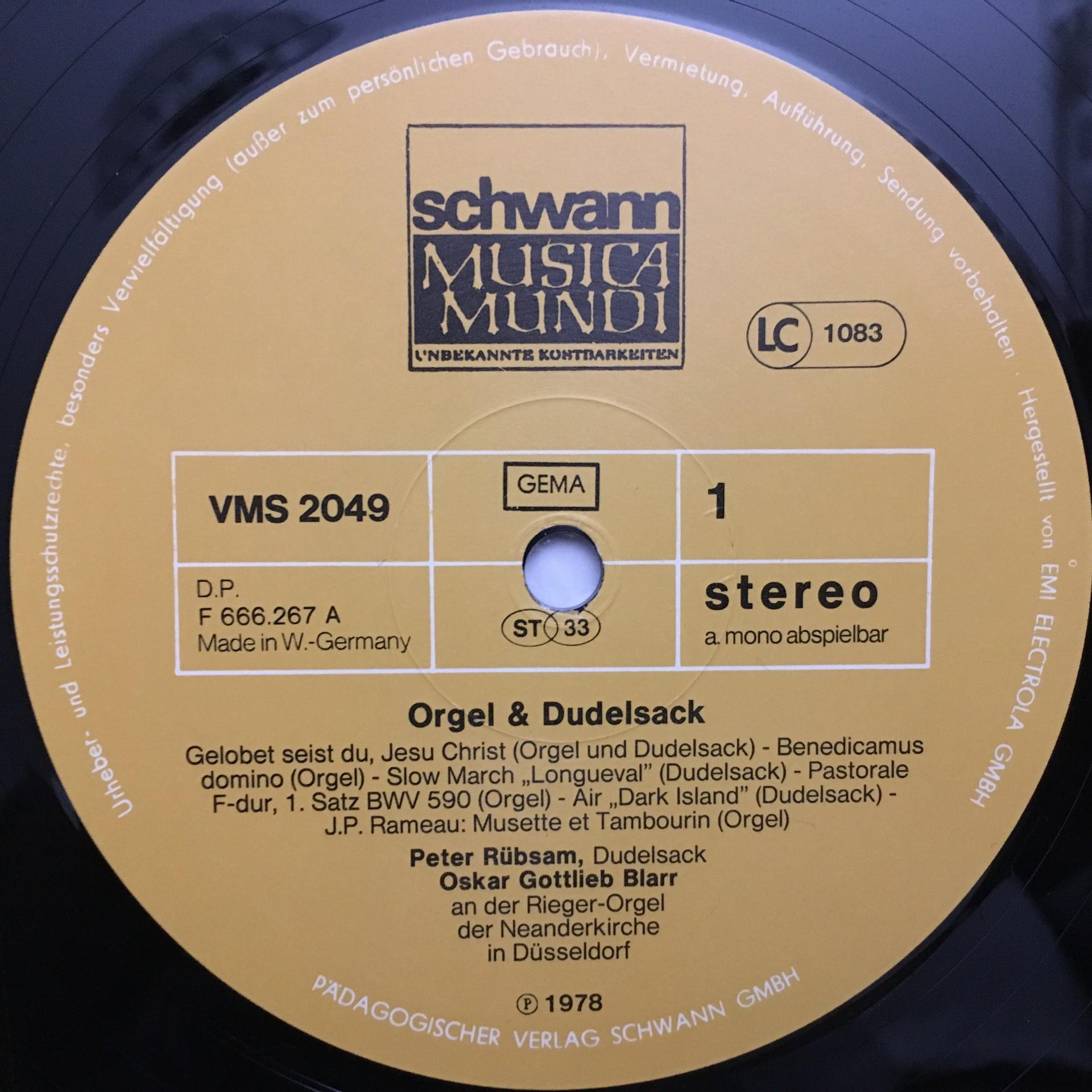 N341 Organ & Bagpipes Blarr Rübsam Schwann VMS 2043 Stereo