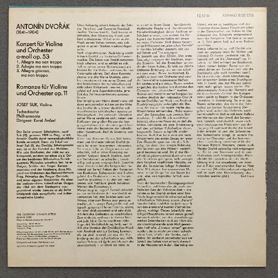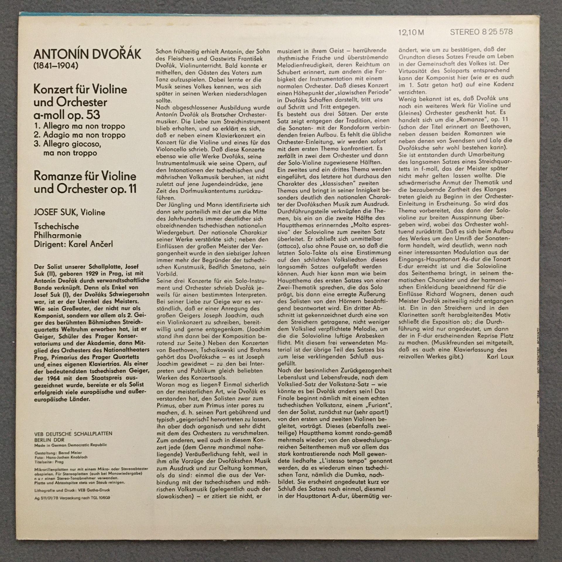 N346 Dvorak Violin Concerto Romance Suk Ancerl Eterna 8 25 578 Stereo