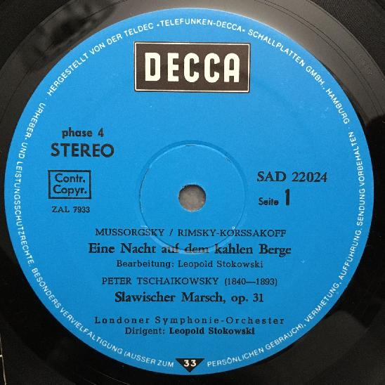 N350 Mussorgsky Tchaikovsky Slavonic March Stokowski DECCA SAD 22 024 Stereo