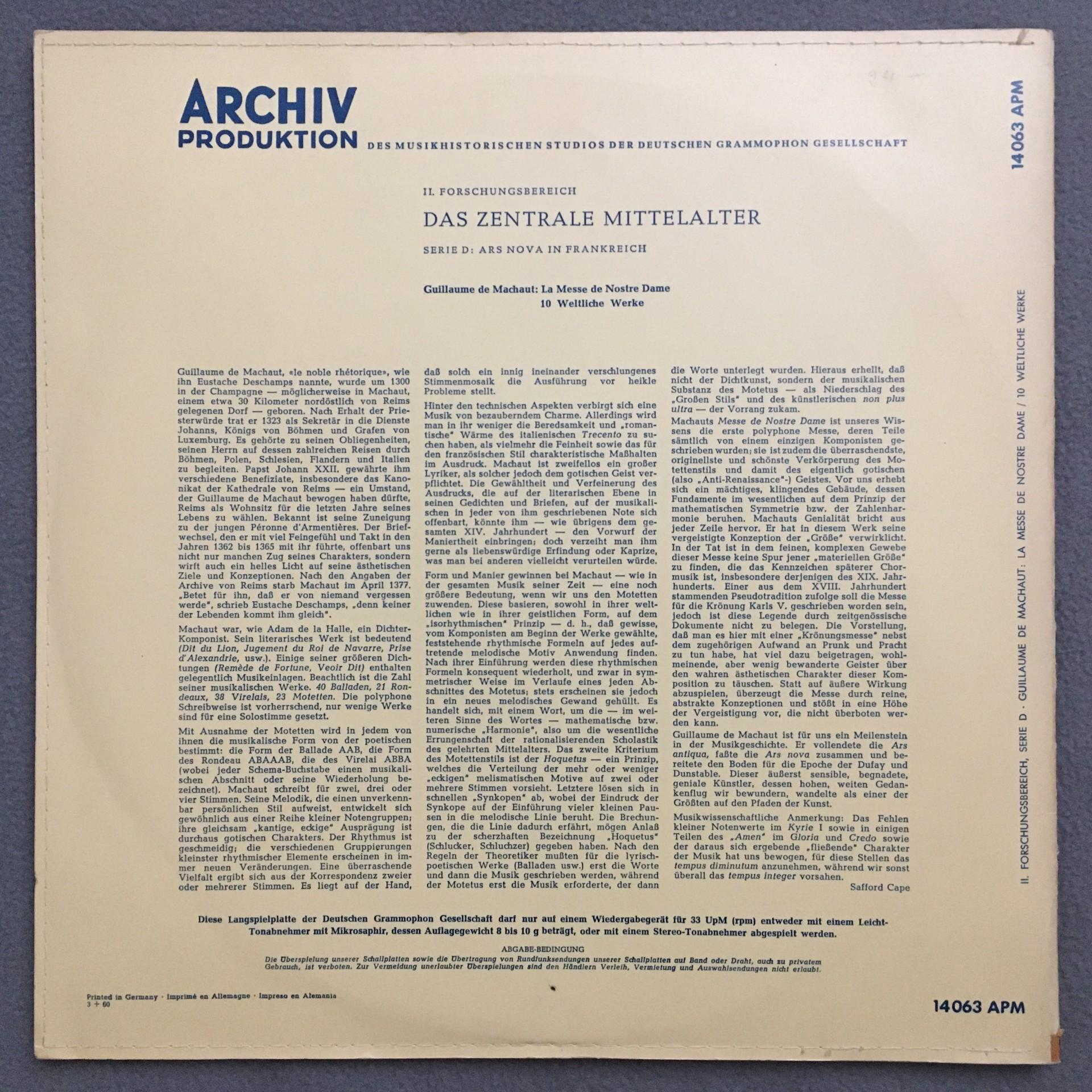 N358 Central Middle Age De Machaut Kyrie Cape DGG Archiv 14 063 APM