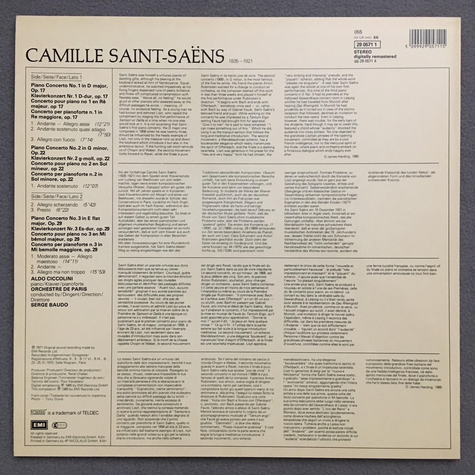 N364 Saint-Saens Piano Concerto Ciccolini Baudo EMI 29 0571 1 Digital Stereo