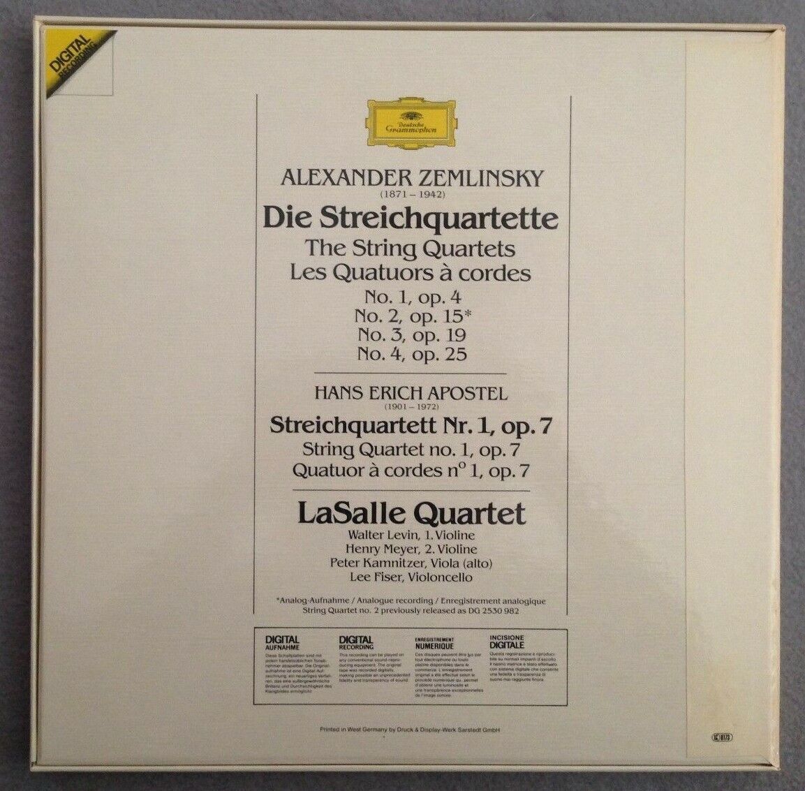 B848 Zemlinsky String Quartet LaSalle Quartet 3LP DGG 2741 016 Digital Stereo