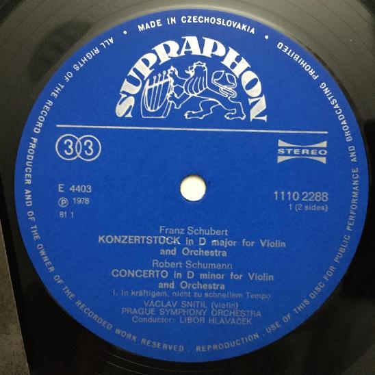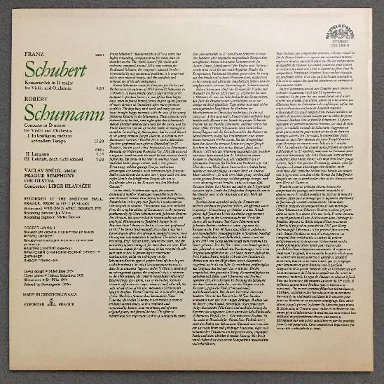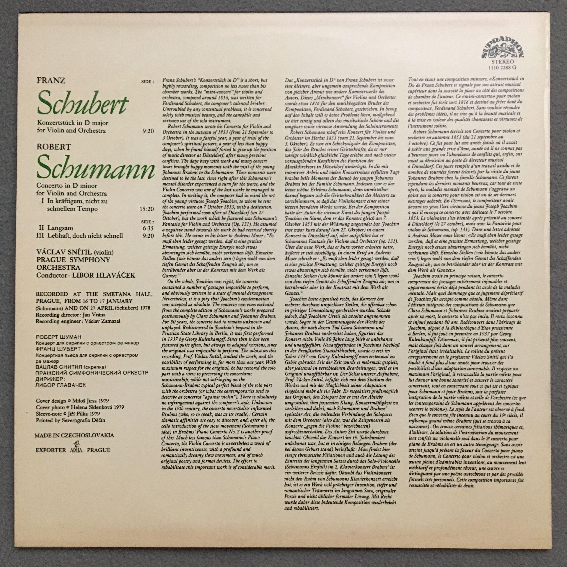 N373 Schumann Schubert Violin Concerto Snitil Hlavacek Supraphon 1110 2288 Ster