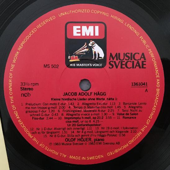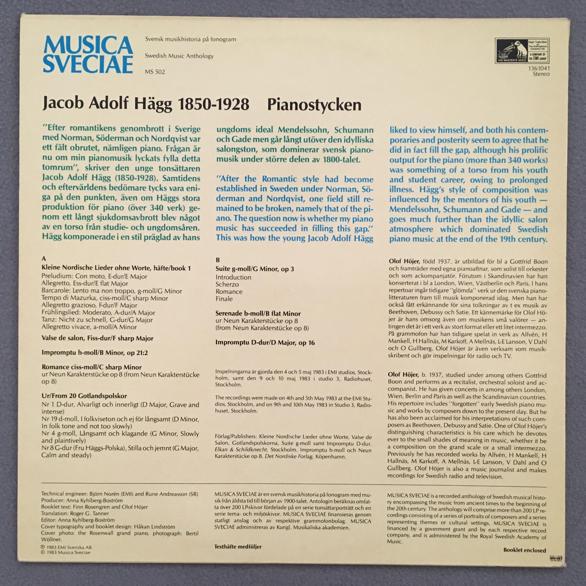 N376 Hägg Piano Pieces Suite Serenade Höjer EMI 136 1041 Stereo