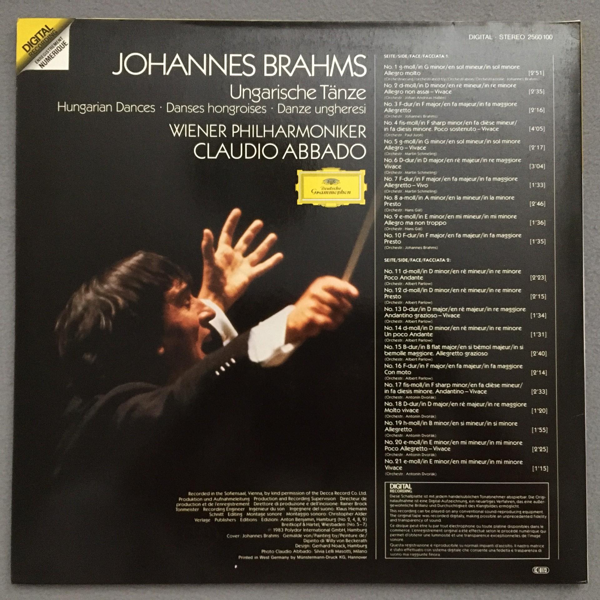 N397 Brahms 21 Hungarian Dances Abbado VPO DGG 2560 100 Digital Stereo