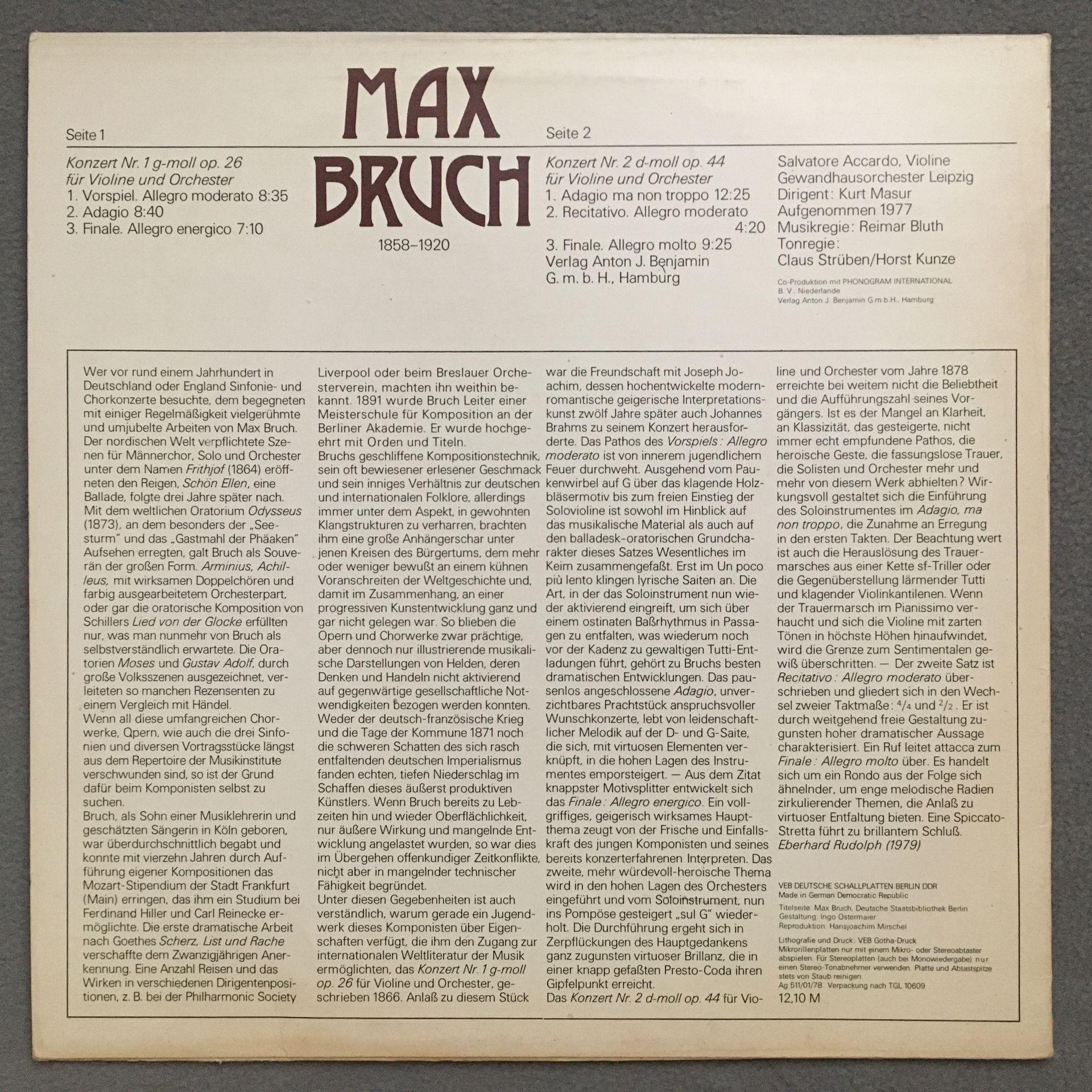 N406 Bruch Violin Concertos No.1 & No.2 Masur Eterna 8 27 149 Stereo