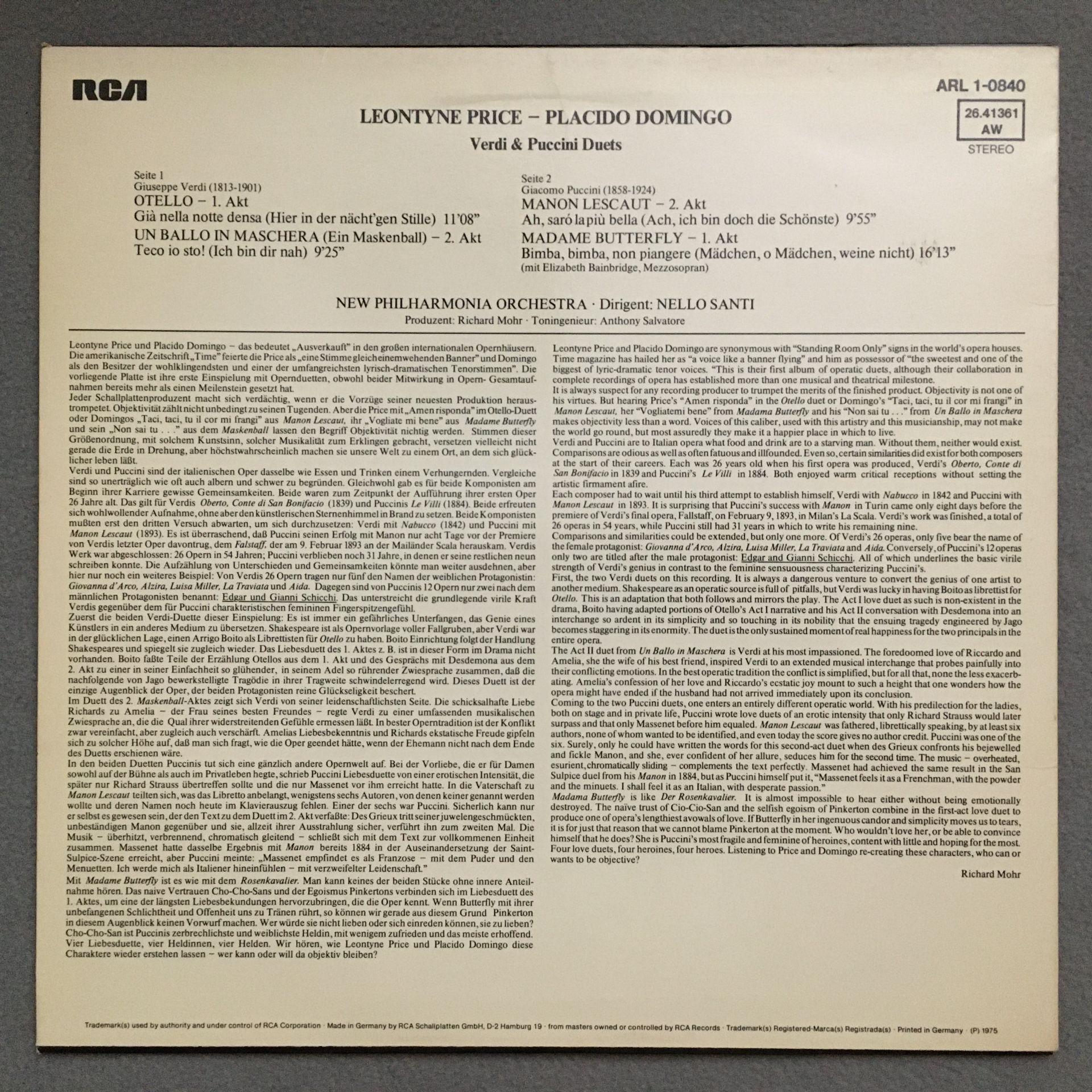 N410 Verdi Puccini Duets Price Domingo Santi RCA 26.41361 AW Stereo