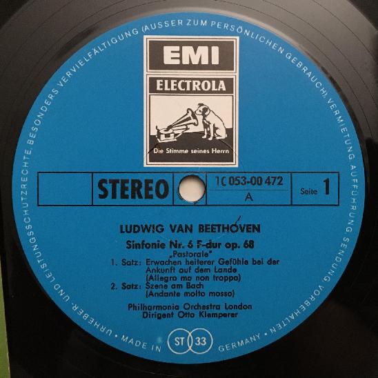 N422 Beethoven Symphony No.6 Klemperer LPO EMI 1 C 053-00-472 Stereo