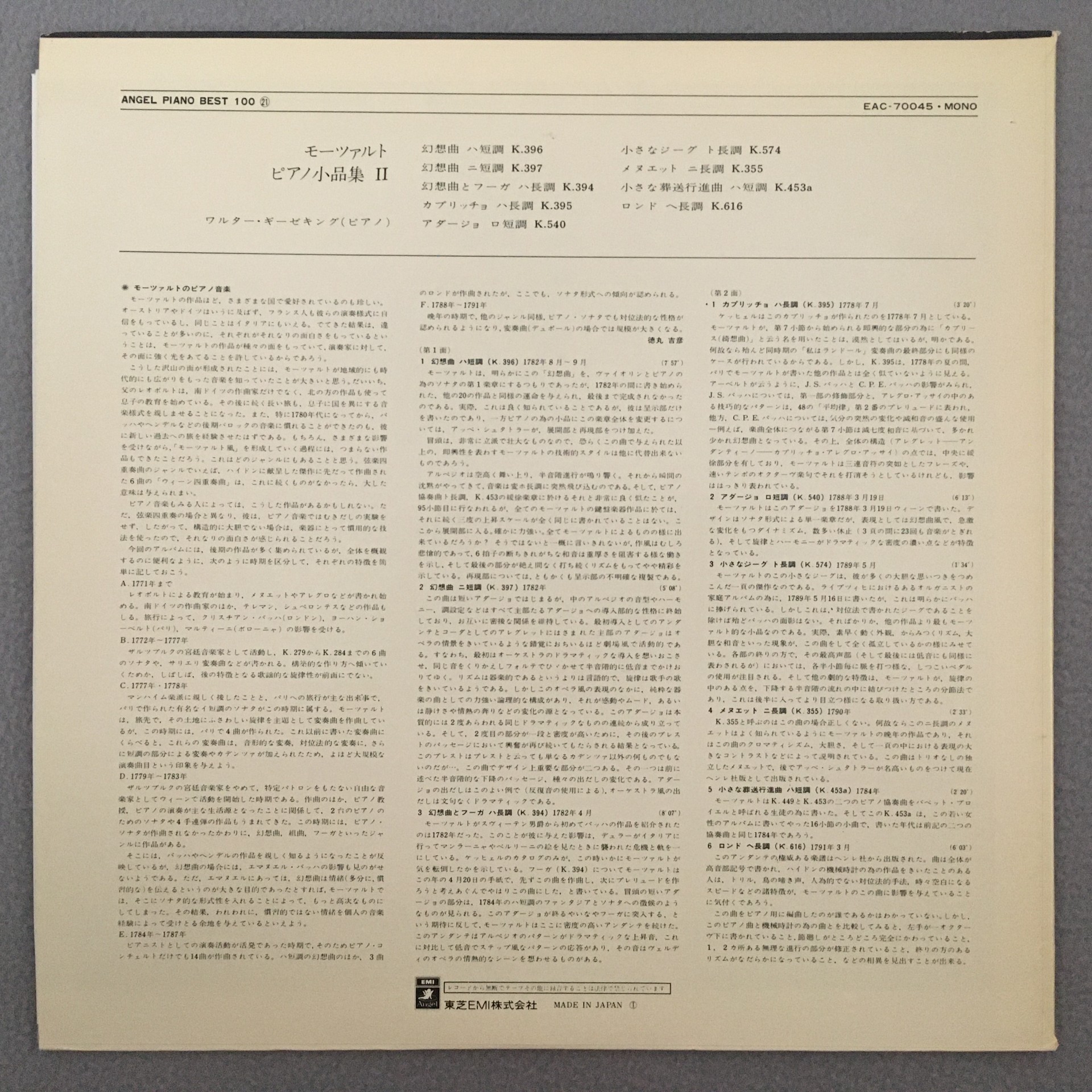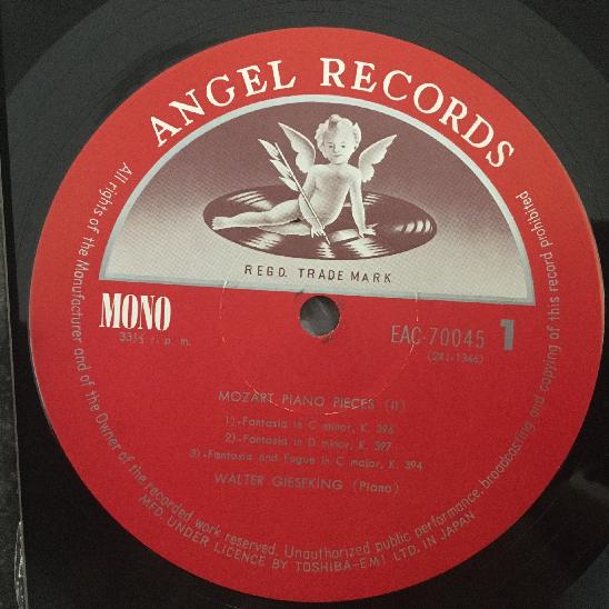 R579 Mozart Fantasy & Fugue Capriccio Gieseking Piano Angel EAC-70045 Japan