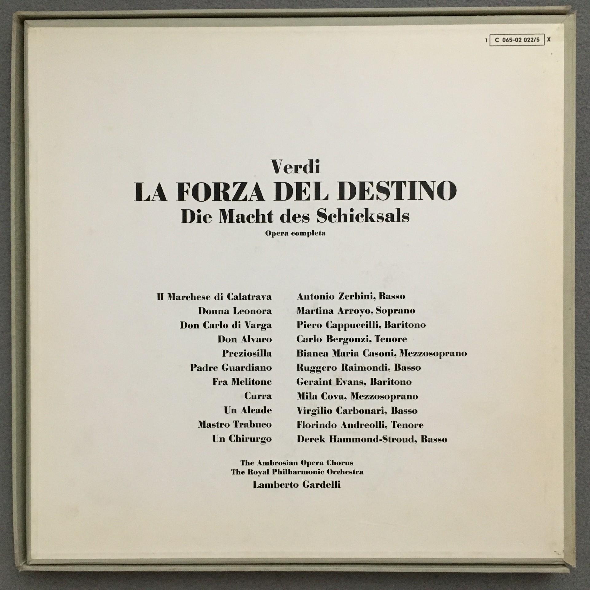 D490 Verdi la Forza del Destino Gardelli 4LP EMI Angel 1 C 065-02 022/5 X Stereo