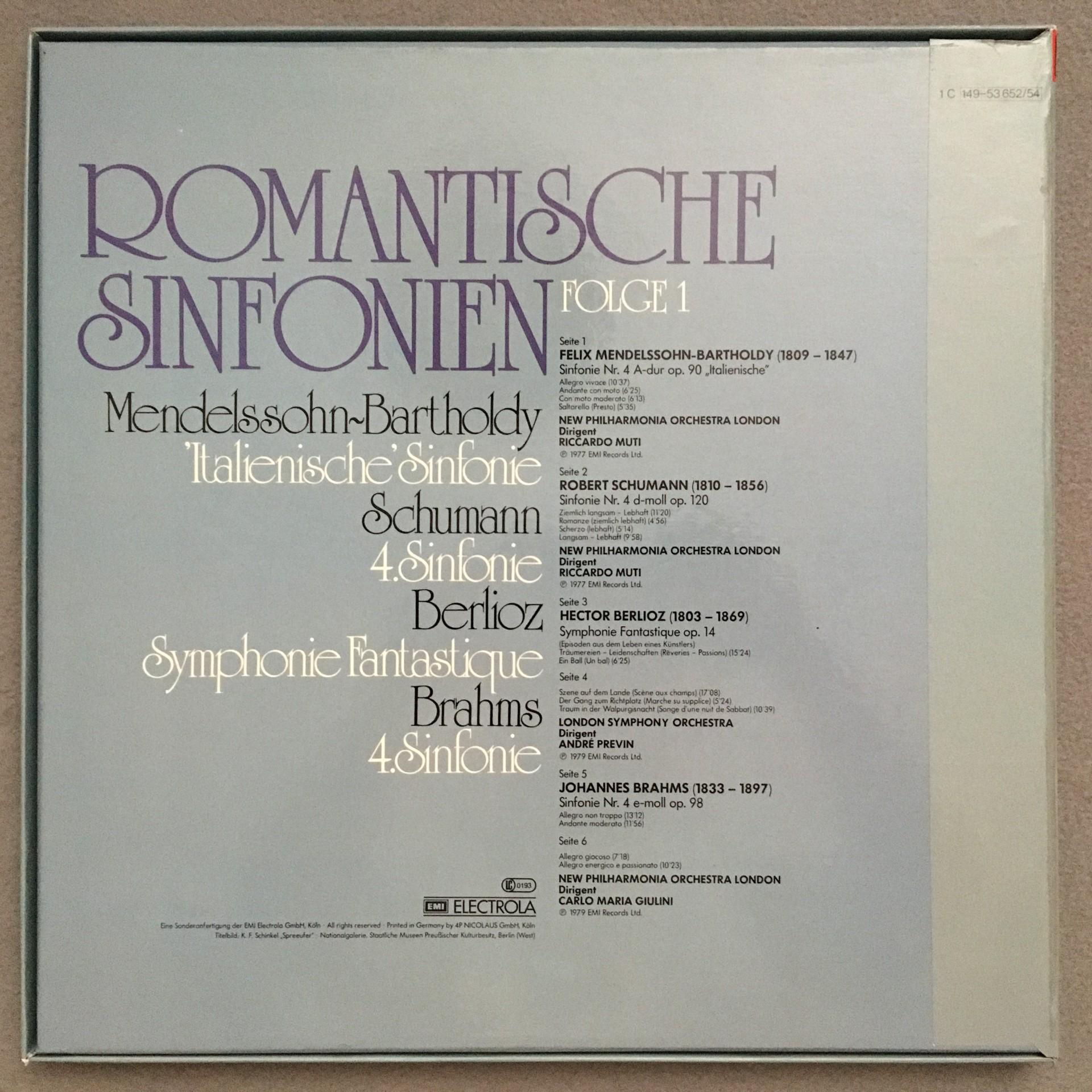 D493 Romantic Symphonies Muti Giulini Previn 3LP EMI 1 C 149-53 652/54 Quadro