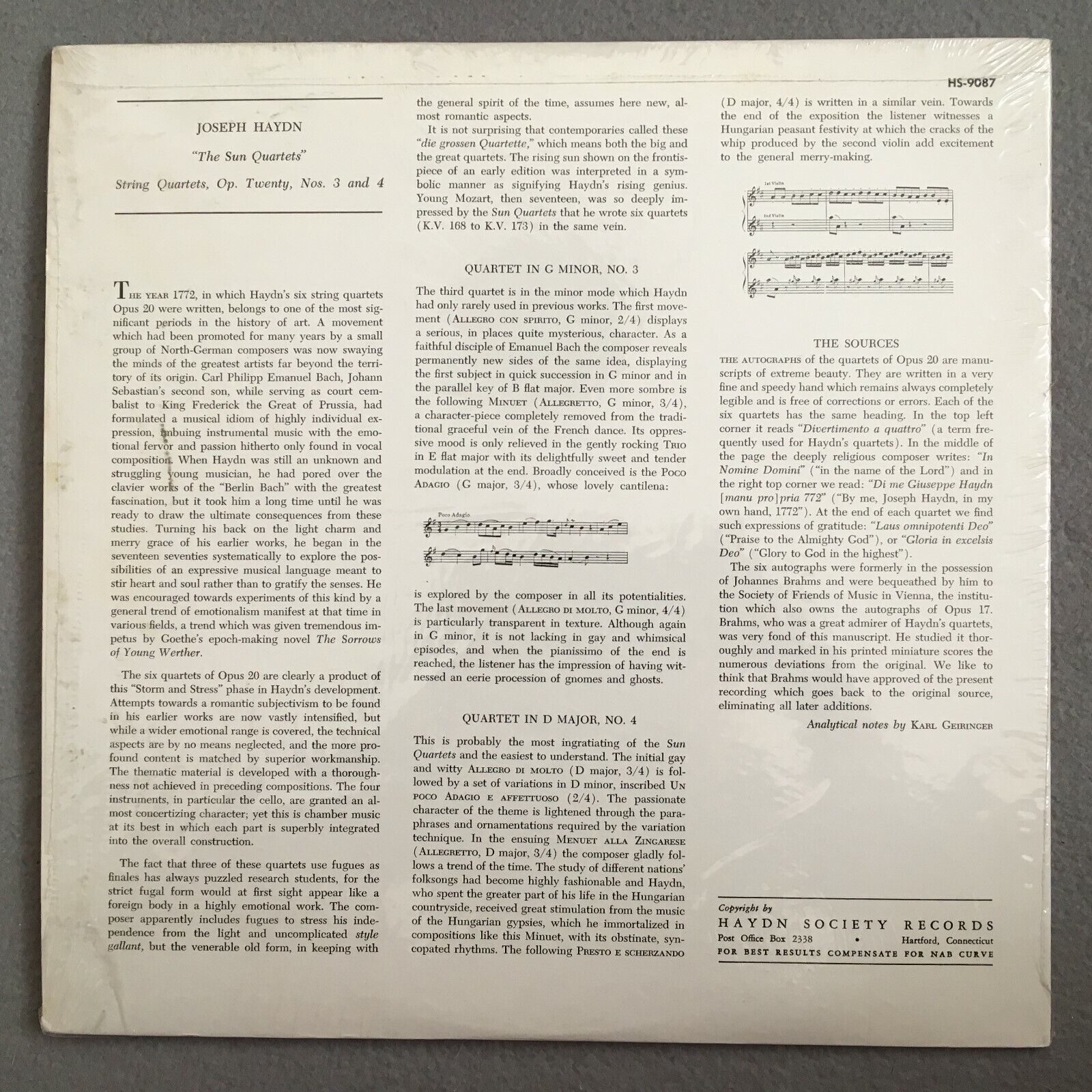 X684 Haydn String Quartets OP.20 No.3 & No.4 Schneider Quartet HSR HS-9087