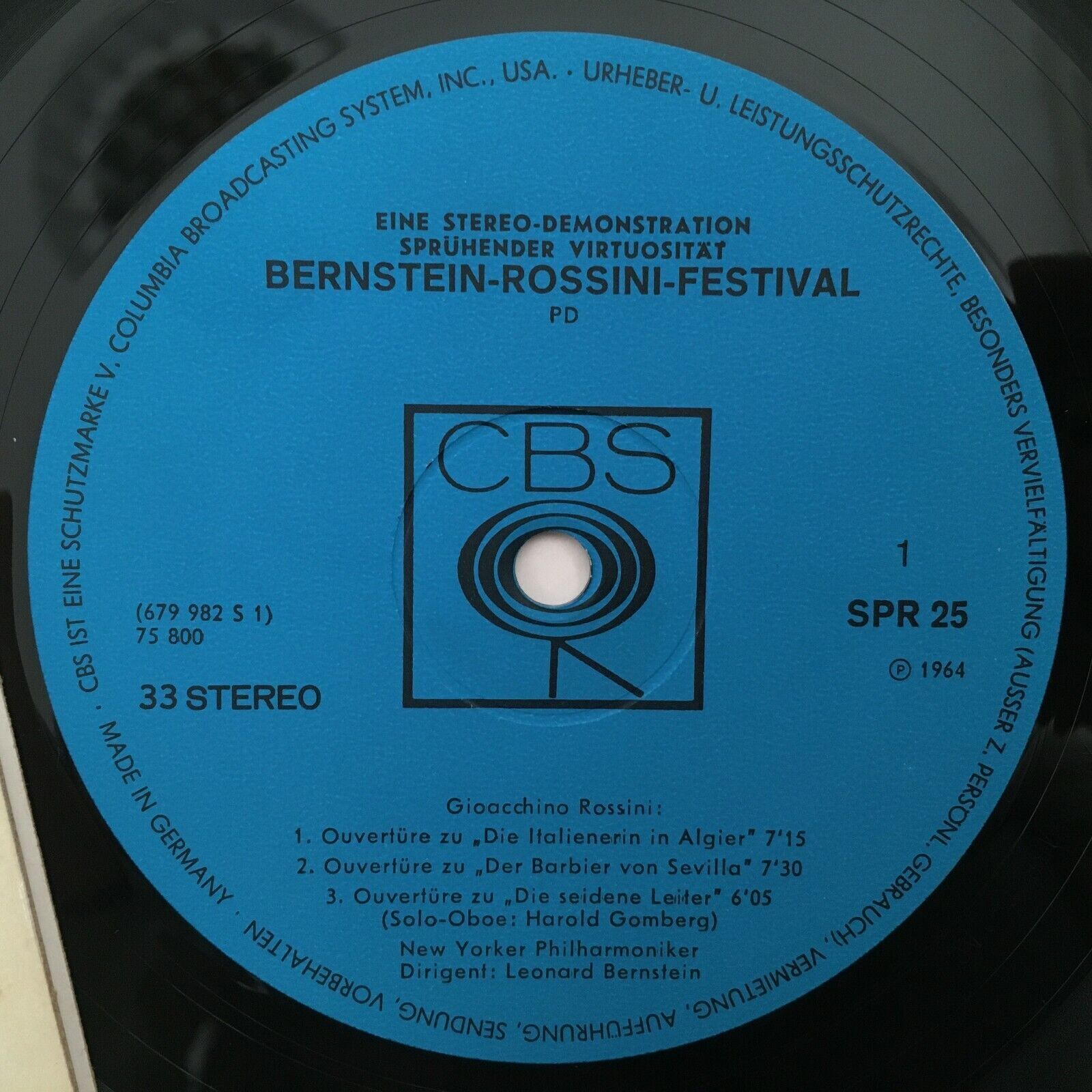 S367 Bernstein Rossini Festival Overtures CBS SPR 25 Stereo