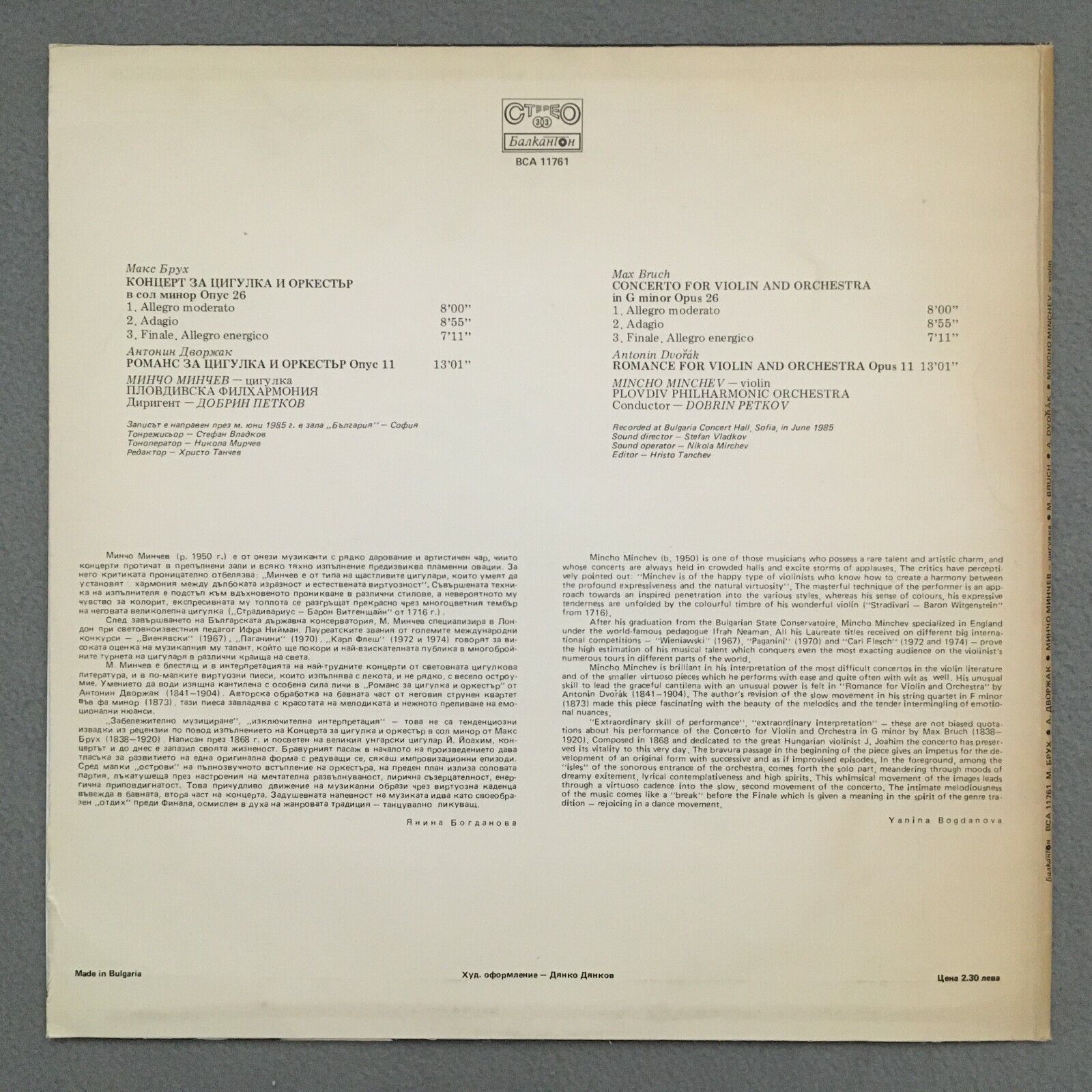 S036 Bruch Violin Concerto Dvorak Romance Minchev Petkov Bankahtoh BCA 11761 St