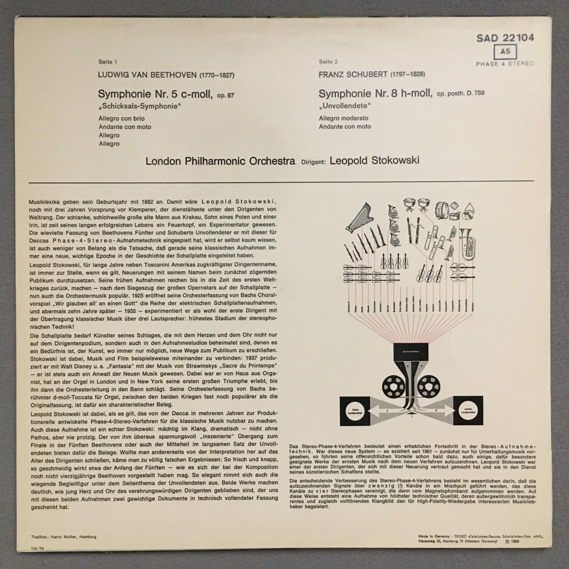 N456 Beethoven Schubert Symphonies Stokowski DECCA SAD 22 104 Stereo