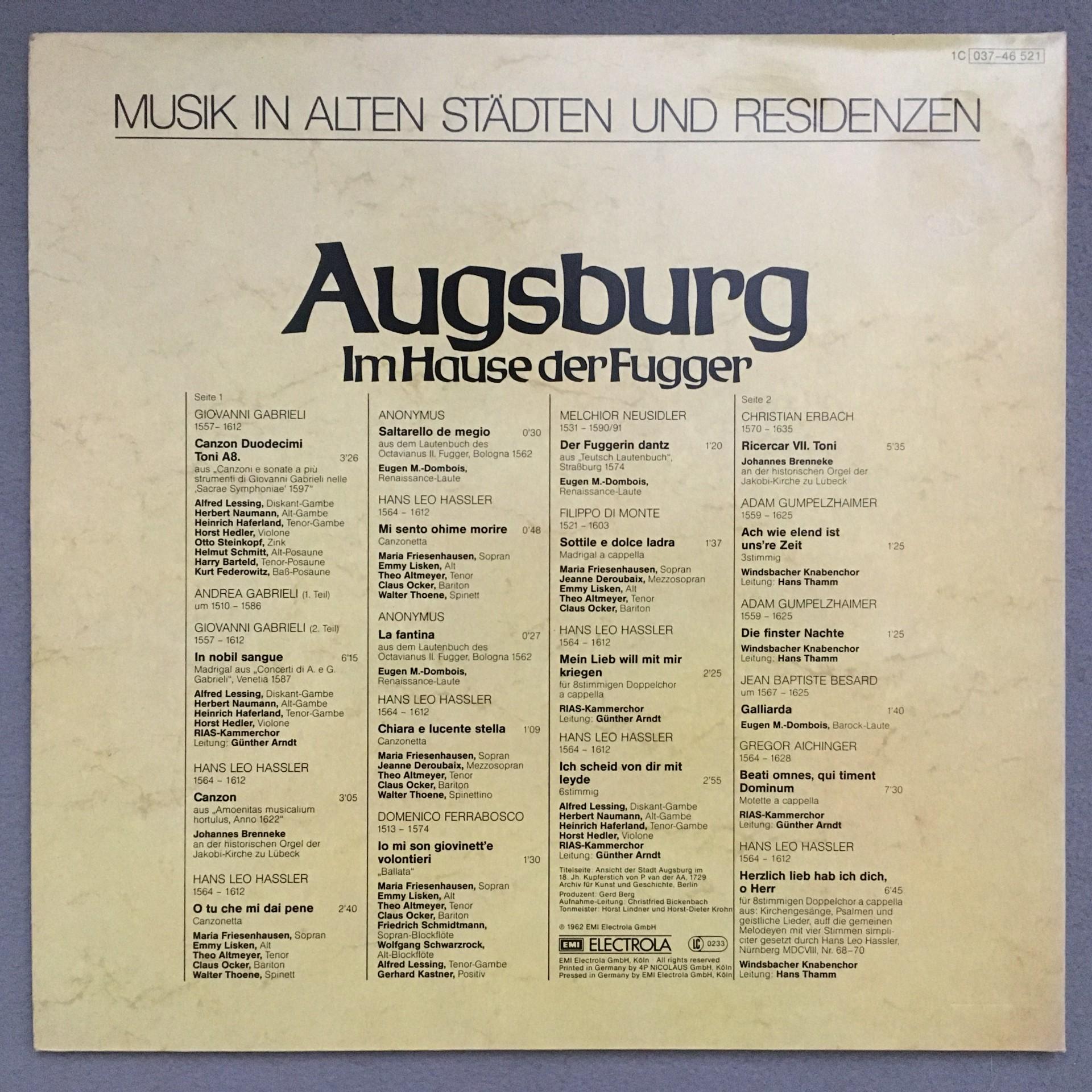 N463 Gabrieli Hassler Music from old cities Augsburg EMI 1C 037-46 521 Stereo